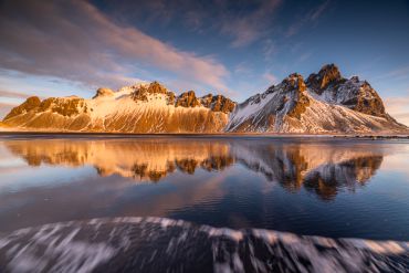 Das Programm am Nachmittag und Abend umfasst einen Ausflug nach Höfn, wo wir uns zunächst der kulinarischen Besonderheit der kleinen Hafenstadt widmen: der vorzüglichen Küche, die insbesondere für ihre ausgefallene Fisch- und Hummergerichte bekannt ist. Gut gestärkt machen wir uns nach dem Essen auf den Weg zum Vestrahorn. Die fotogene Felsspitze, die Teil des Berges Klifatindur ist und imposant aus dem Bergmassiv herausragt, liegt auf der Landzunge Stokksnes. Von dort aus werden wir sowohl bei Sonnenauf- als auch bei Sonnenuntergang einen wunderbaren Blick auf das Bergpanorama genießen und atemberaubende Landschaftsaufnahmen umsetzen.