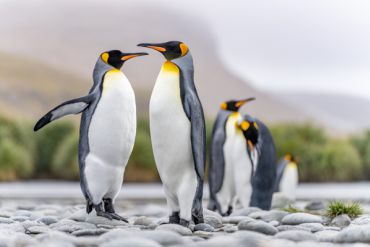 Salisbury Plain ist bekannt für eine der größten Königspinguinkolonien Südgeorgiens. Die sanft ansteigenden Ebenen, eingerahmt von den schneebedeckten Hängen der Grace- und Lucas-Gletscher, bieten eine spektakuläre Kulisse für Tierbeobachtungen. Hier drängen sich die brütenden Pinguine mit ihren flauschigen, braunen Küken dicht an dicht, während immer wieder erwachsene Tiere aus dem Meer kommen, um ihre Jungen zu füttern. Neben den Königspinguinen bevölkern auch Skuas und Riesensturmvögel die Ebene, stets auf der Suche nach einer Gelegenheit zum Beutemachen.