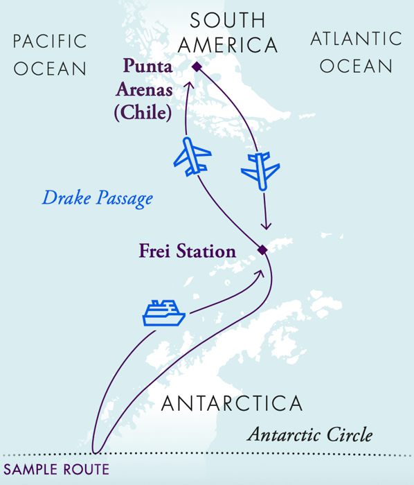 - Fliegen Sie in nur rund zwei Stunden von Punta Arenas direkt in die Antarktis und ersparen Sie sich die zweitägige Fahrt durch die Drake-Passage