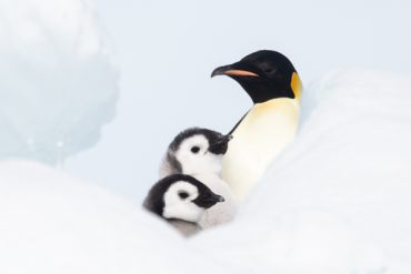 Kaiserpinguine werden bis zu 1,30 m groß und über 20 Jahre alt. Die Küken schlüpfen ab Juli und verbleiben anfangs in der Bauchfalte der Männchen. Ab November werden die Küken flügge, bekommen das Federkleid der Erwachsenen und im Dezember beginnt die Wanderung in Richtung Meer.