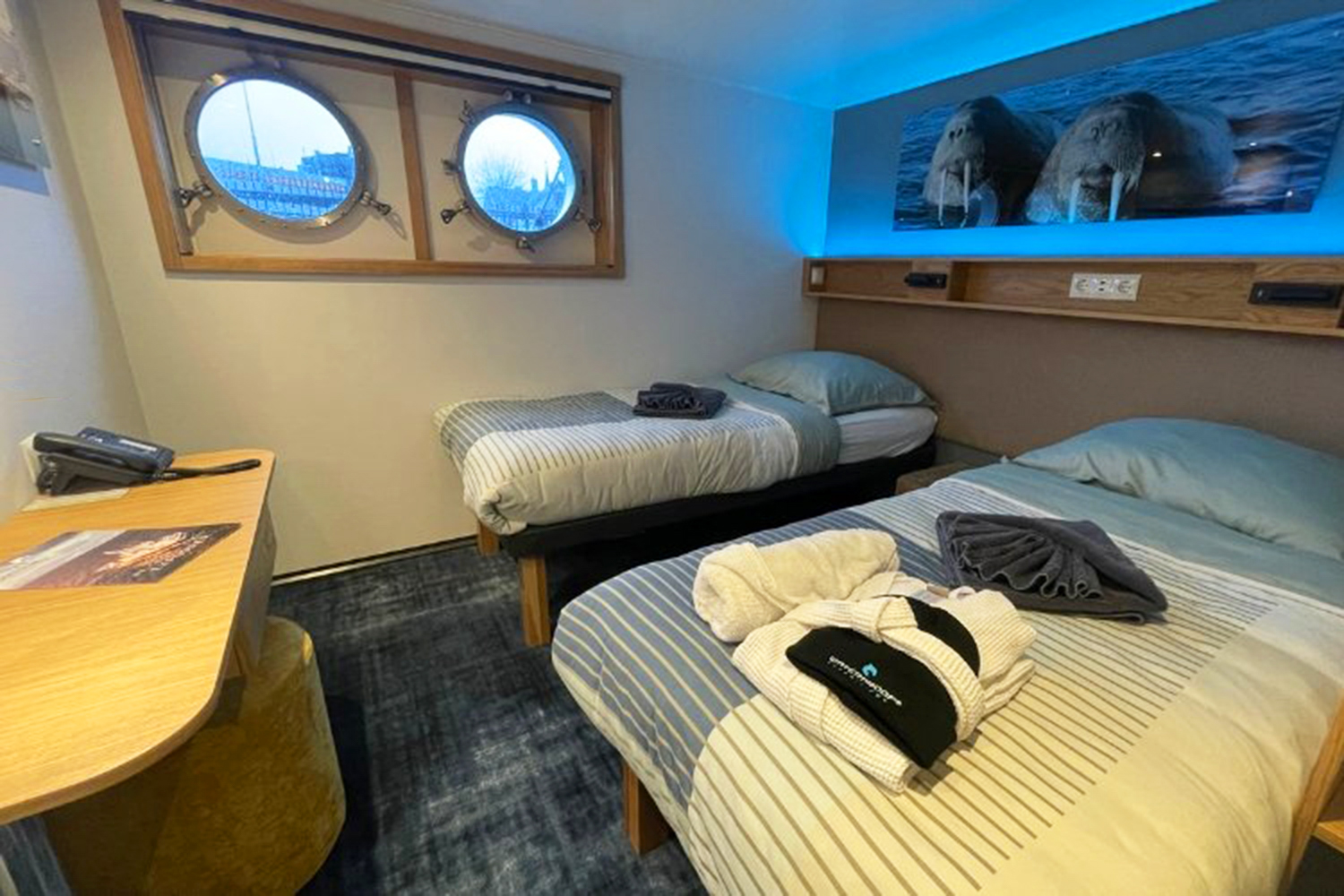 Willkommen an Bord der Explorer – Ihrem schwimmenden Zuhause für Abenteuer mit Aussicht! Das Herzstück des Schiffs ist der lichtdurchflutete Wohn- und Essbereich mit nahezu rundum Panoramablick. Hier genießen Sie nicht nur atemberaubende Landschaften, sondern auch entspannte Stunden in stilvoller Atmosphäre. Nach einem erlebnisreichen Tag voller Entdeckungen lädt das Expeditionsteam zu spannenden Vorträgen über Wildtiere, Naturwunder und faszinierende Phänomene ein – Wissen, das inspiriert und bewegt. Und wenn die Sonne untergeht, beginnt Ihre Zeit zum Abschalten: Lassen Sie den Tag in der Sauna oder im Whirlpool an Deck ausklingen – mit einem Glas in der Hand und dem Blick auf unberührte Natur. Die Explorer verbindet Abenteuerlust mit erstklassigem Komfort. Jede Kabine ist sorgfältig gestaltet und mit allen Annehmlichkeiten ausgestattet, die Sie für eine erholsame Reise brauchen. Auf dem Oberdeck erwarten Sie zwei Einzelkabinen und zwei elegante Executive-Suiten mit raumhohen Fenstern und gemütlichen Doppelbetten. Das Unterdeck beherbergt zwei großzügige Superior-Suiten sowie drei exklusive Deluxe-Einzel-Suiten – alle mit eigenem Bad und stilvollem Ambiente.