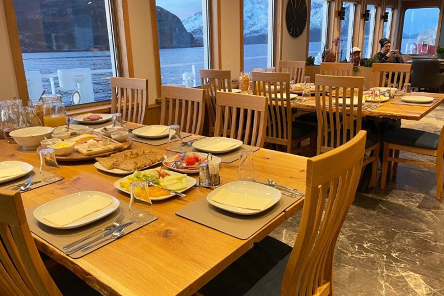 Lassen Sie sich von den Aromen der Arktis – und weit darüber hinaus – kulinarisch verwöhnen. Dreimal täglich serviert Ihnen der Küchenchef frisch zubereitete Mahlzeiten, welche lokale Zutaten raffiniert mit internationalen Einflüssen verbinden. Die abwechslungsreiche Speisekarte sorgt für genussvolle Abwechslung und kleine Überraschungen. Kaffee, Tee und Wasser stehen Ihnen den ganzen Tag über zur Verfügung und am Nachmittag erwartet Sie ein liebevoll zubereiteter Snack – perfekt für eine kleine Pause mit Meerblick. Das warme, stilvolle Ambiente und der freie Blick auf die arktische Landschaft machen jede Mahlzeit an Bord der Explorer zu einem besonderen Moment, den Sie nicht vergessen werden.