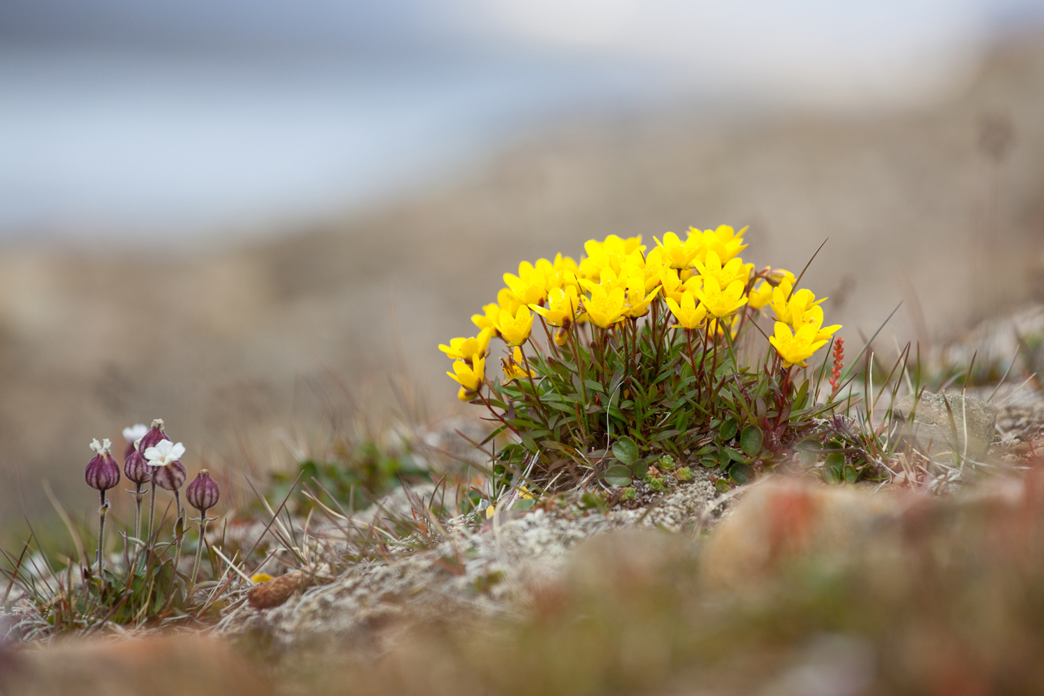 Zwischen Fels und Eis eröffnen sich in dieser Phase des arktischen Jahres überraschend farbenfrohe Kontraste: Kleine Oasen aus blühender Tundra bringen Leben in die karge Landschaft. Verschiedene Pflanzenarten wie der leuchtend gelbe Svalbard-Mohn, zarte Steinbrechgewächse oder kompakte Polarkissen trotzen der Kälte und entfalten ihre Blüten in feinen, intensiven Farben – eine stille, aber eindrucksvolle Schönheit, die sich hervorragend beobachten und fotografisch festhalten lässt.