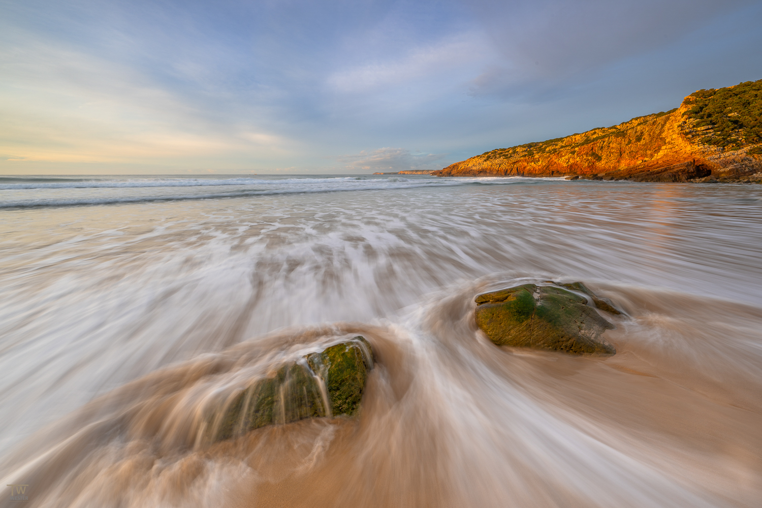 Am Vormittag machen wir nochmal einen kleinen Fotoausflug zum Sonnenaufgang zum Strand Praia de Martinhal und fangen die ersten warmen Lichtstrahlen des Tages in dem geschützten Naturpark ein. Umgeben von der flachen Dünenlandschaft des portugiesischen Südostens warten viele weitere spannende Fotoperspektiven auf uns. Einige Spots der Gegend besuchen wir deshalb ein zweites Mal, da sich bei unterschiedlichem Tidenstand ganz neue fotografische Blickwinkel ergeben. Für heute Mittag planen wir deutlich mehr Zeit für Erholung ein, da uns bereits am Nachmittag eine aufregende Fahrt erwartet. Gemeinsam machen wir uns auf den Weg und fahren die Westalgarve gen Norden entlang. In der friedlichen Ortschaft Almograve angekommen, besuchen wir zunächst den nahegelegenen Strand Praia de Almograve mit seinem ausgedehnten Sandstrand, der von rötlichen Steilküsten und weiten Dünenlandschaften begrenzt wird.