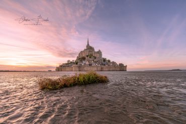 - Die felsige und weltbekannte Insel bzw. Gemeinde Le Mont-Saint-Michel in der Normandie