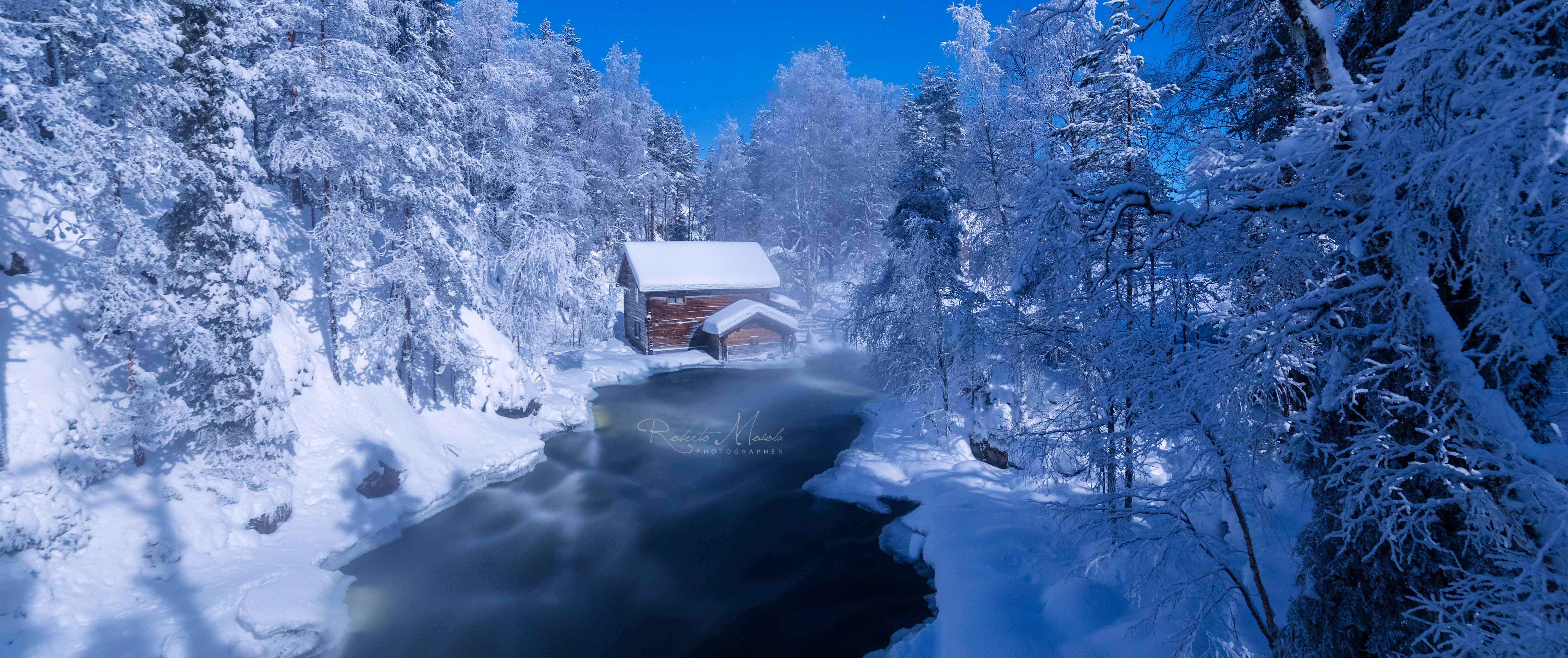 - Zahlreiche herrliche Foto-Spots inmitten tief verschneiter Wälder & Hütten, gefrorener Seen und beeindruckender Stromschnellen im Oulanka Nationalpark