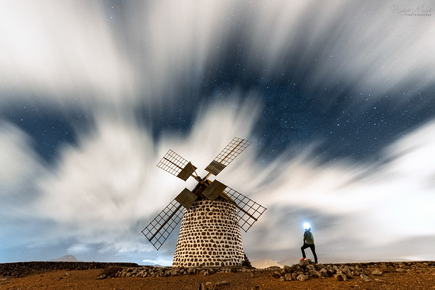Auch am fünften Tag unserer Reise wachen wir schon lange vor Sonnenaufgang auf, um unseren Sonnenaufgangs-Spot – die Molinos de Villaverde – auch "Beverly Hills von Fuerteventura" genannt - im besten Licht zu erreichen. Der Montaña del Molino wirkt, als ob er als Höhenkamm künstlich errichtet wurde – er ist aber "echter Natur". Besser hätte man ihn nicht bauen können, um dort oben Windmühlen zu betreiben. Das Plateau ist so ausgerichtet, dass der Nordost Passat ungehindert hinweg fegen kann. Und mehr als das, zur Linken und Rechten vom Montaña de Escanfraga und Montaña de los Saltos flankiert, bilden beide Vulkane eine „Düse“ und bringen damit den ohnehin schon starken Passatwind nochmal richtig auf Hochtouren. Die beiden historischen Windmühlen bilden ein Wahrzeichen Fuerteventuras und stellen ein absolutes Traummotiv dar, welches wir vor dem Hintergrund der sanften Hügel und offenen Landschaften festhalten wollen – bestenfalls mit einem Sternenhimmel, der unser Postkartenmotiv vervollständigt. Nachdem wir das erste Licht des Tages eingefangen haben, setzen wir unsere Reise nach Vallebron fort – zu einem Aussichtspunkt, welcher eine atemberaubende Kulisse für uns bereit hält. Vor uns erstreckt sich die majestätische Weite einer friedvollen Landschaft, die sich in sanften Hügeln und tiefen Tälern entfaltet. Die Kontraste zwischen dem goldenen Farbton der trockenen Erde und dem tiefen Blau des Himmels schaffen eine fesselndes Motiv, welches wir in ganzer Pracht für die Ewigkeit festhalten wollen. Glücklich und zufrieden mit unseren Aufnahmen kehren wir zum Frühstück in unsere Villa zurück, genießen die Ruhe und bereiten uns gedanklich auf die kommenden fotografischen Erlebnisse vor.