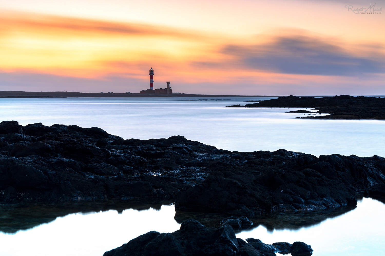 Am Nachmittag steht die Küstenregion um Tostón auf unserem Tourplan – Sehnsuchtsort für viele Inselbesucher. Kristallklare, türkisfarbene Buchten, Wellen und Wind erzeugen eine entspannte Atmosphäre. Der Faro de el Tostón an der Punta Banella im Norden von El Cotillo ist einer der kuriosesten Leuchttürme auf Fuerteventura. Er besitzt drei unterschiedliche Türme, die zu unterschiedlichen Jahren erbaut worden sind. Fotogen ist der Faro de Tostón obendrein, da er sich perfekt gegen den meist tiefblauen Himmel ablichten läßt. Gemeinsam erkunden wir die zerklüftete Küste und fotografieren die vielfältigen Strukturen, Muster und das Meeresleben in den Gezeitentümpeln.