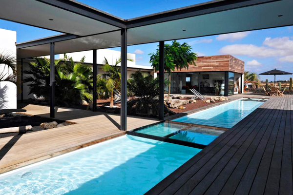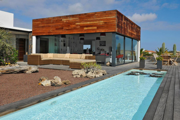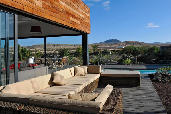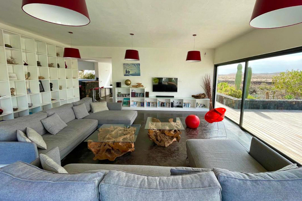 Die luxuriöse Villa La Laguna in Lajares liegt auf einem beeindruckenden Gartengrundstück in Lajares – einem kleinen, idyllischen und ruhigen Ort im Norden von Fuerteventura. Sie überzeugt mit moderner Architektur und einem einzigartigen Wohnkonzept. Die Villa bietet 5 Schlafzimmer, die jeweils über ein En-Suite Bad, eine private Terrasse sowie einen privaten Eingang verfügen. Auf jeweils 25 m² Wohnfläche gibt es 4 Doppelzimmer und 1 Familienzimmer für 4 Personen. Alle Räume sind von außen zugänglich, so entsteht der Eindruck einer kleinen, privaten Ferienanlage mit viel Privatsphäre. Der Wohnbereich verfügt über eine gemütliche Sofalandschaft mit großen Fensterfronten für ein lichtdurchflutetes Raumklima. Der Essbereich sowie die voll ausgestattete Küche schließen sich in einem offenen Wohnkonzept an den Wohnbereich an. Die umlaufende Terrasse offeriert viele Sitzmöglichkeiten, ob im Schatten, in der Sonne oder windgeschützt. Etwas abseits der Villa befindet sich der 70 m² große, beheizte Privatpool. Hier laden Sonnenliegen zum Entspannen ein.