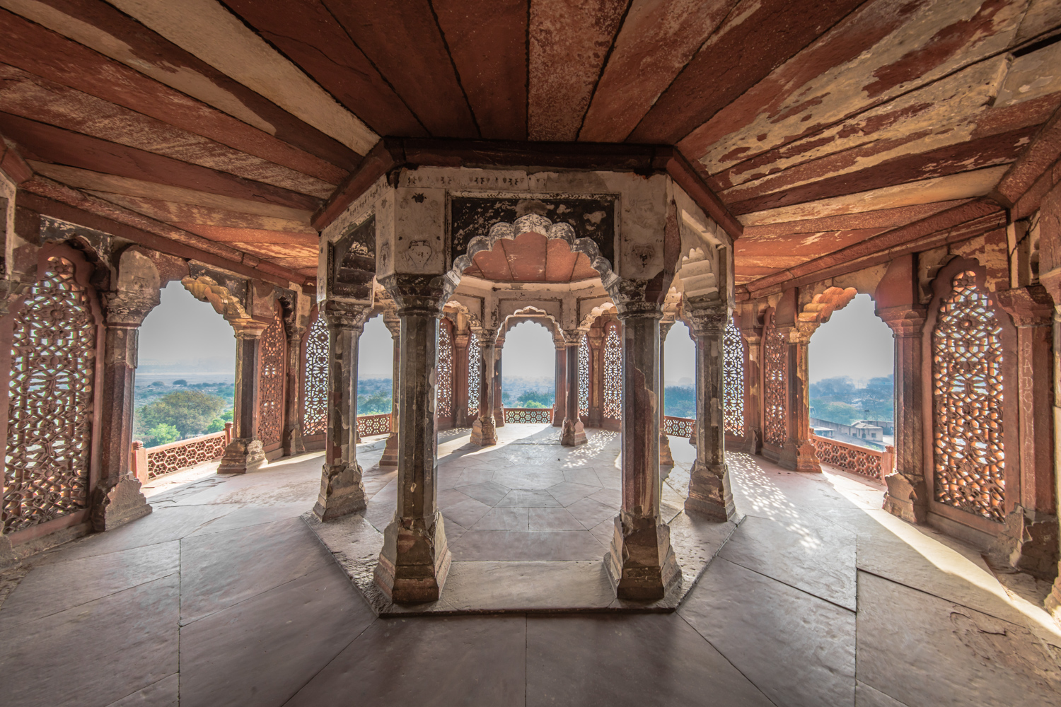 - Stimmungsvolle Interieur- und Outdoorfotografie in Audienzhallen, bezaubernden Gartenanlagen, Pavillions & Moscheen in der Hauptstadt des indischen Mogulreiches, Agra – z. B. das „Rote Fort“ am Westufer des Flusses Jamuna
