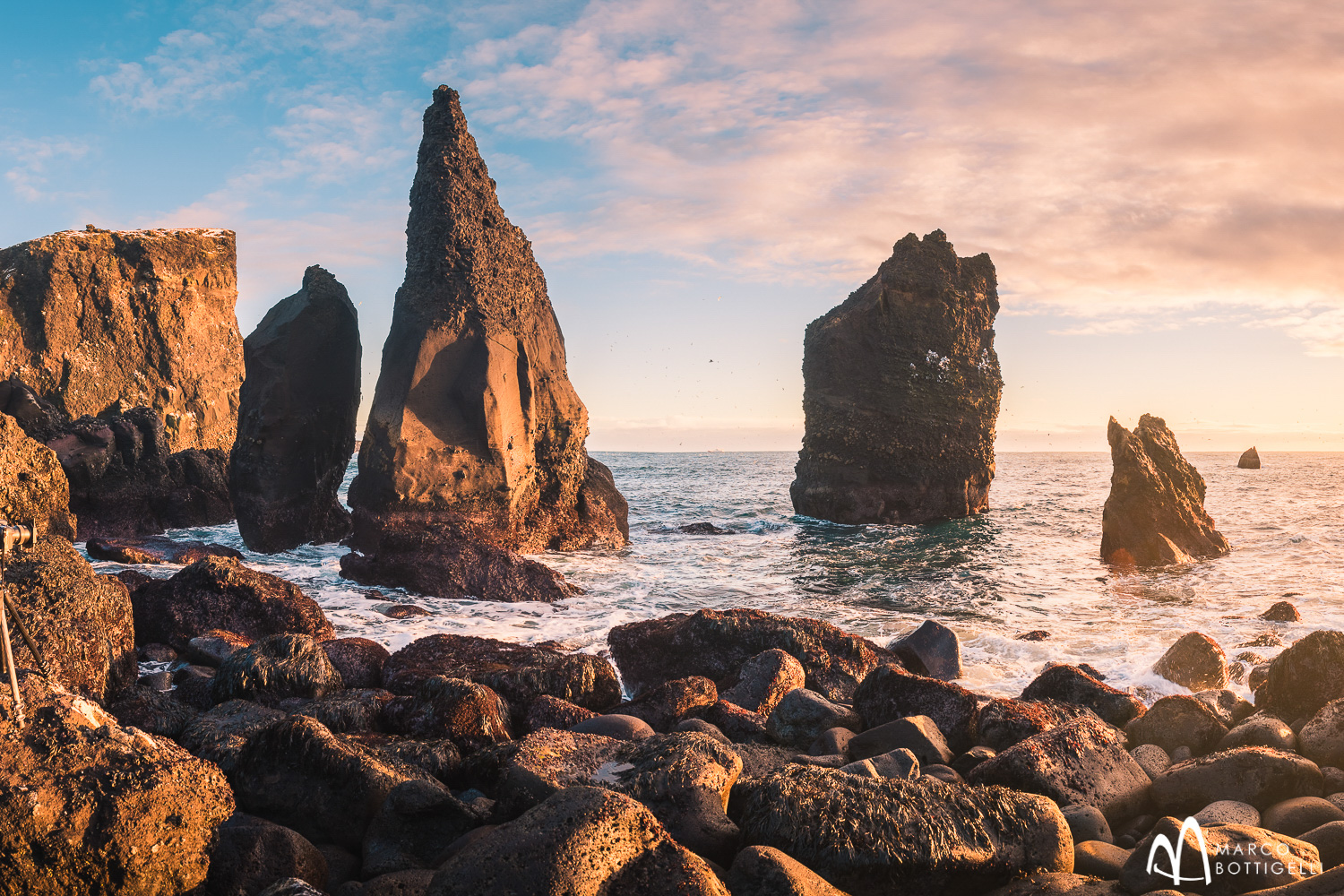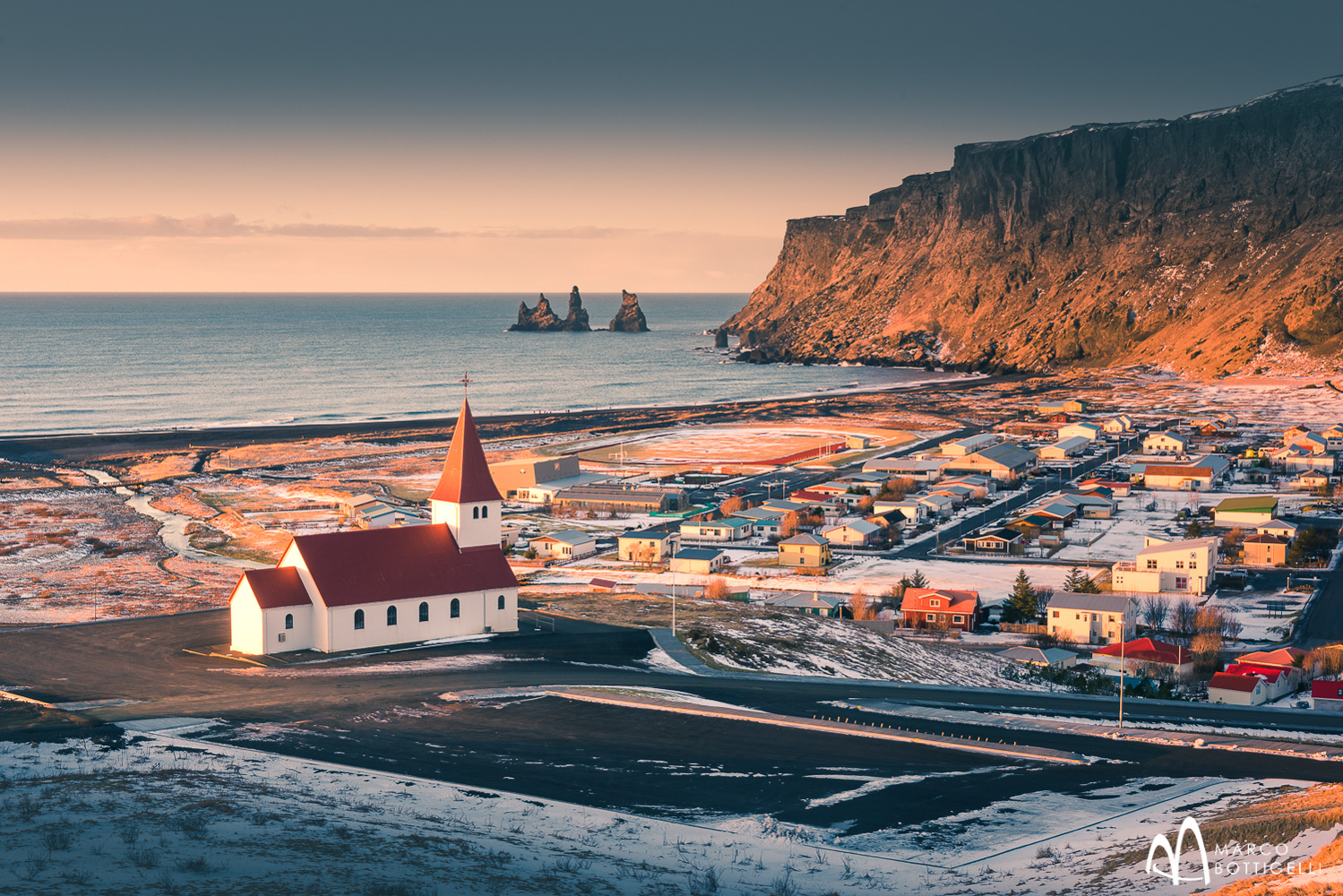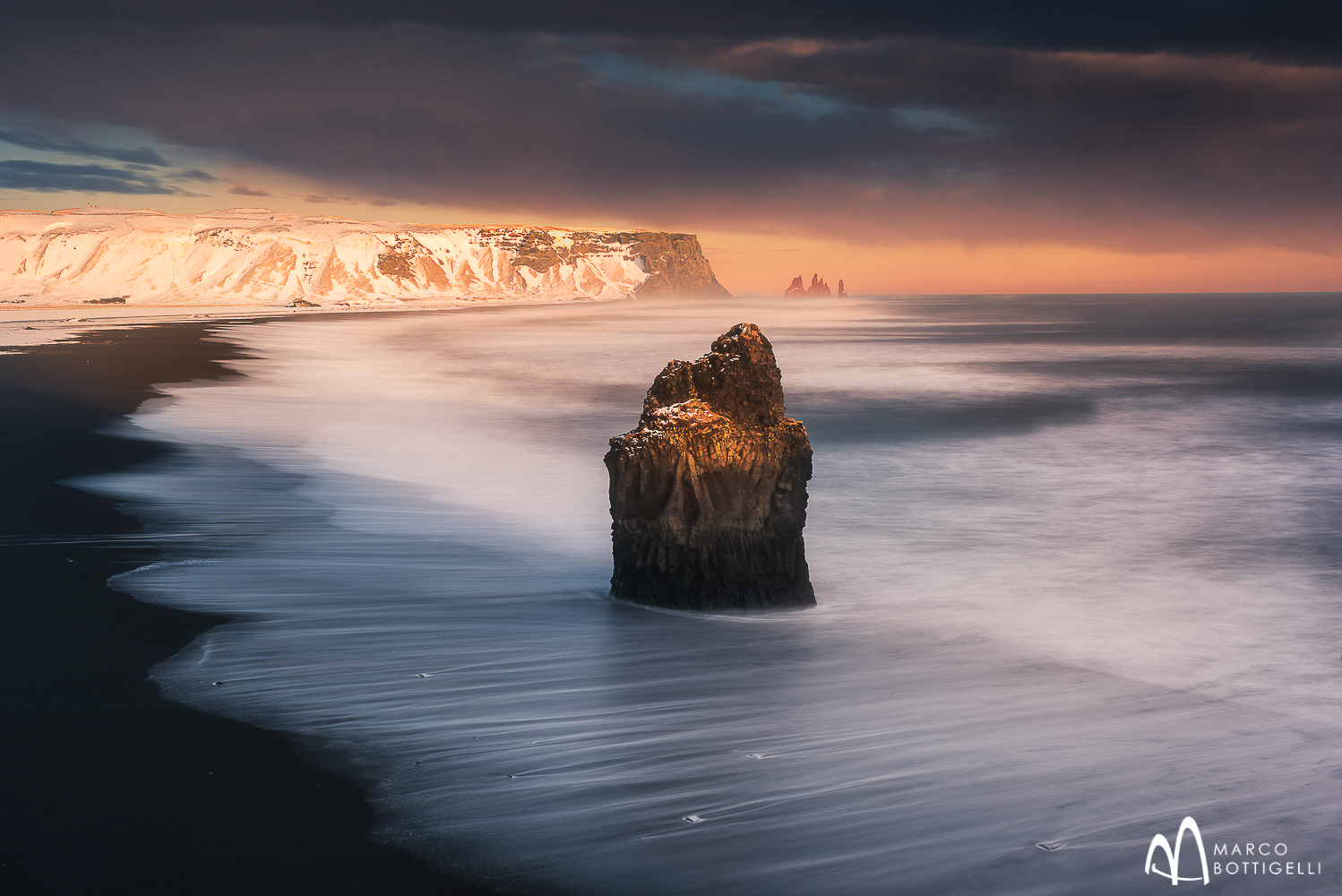 Am Abend kommen wir rechtzeitig in Vík í Mýrdal - einem kleinen Ort an der südlichsten Spitze Islands – an, um das beste Licht an den Klippen über dem schwarzen Strand von Reynisfjara einzufangen. Es wird gesagt, dass das Stehen am Strand von Reynisfjara mit dem wilden Wasser der dramatisch anmutenden Atlantikwellen einem Aufenthalt in einem natürlichen Amphitheater gleicht. Bei phantastischer Brandung im Sonnenuntergang lassen wir uns vom schönen Ausblick auf die Reynisdrangar-Basaltkolumnen inspirieren. Diese ikonischen Felsen sind vulkanischen Ursprungs und sollen der Sage nach versteinerte Trolle sein.