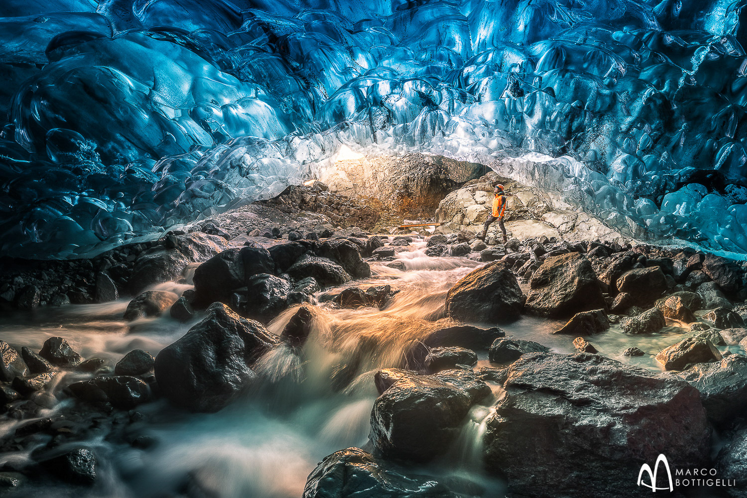 Im Vatnajökull-Nationalpark erwartet uns heute eines der aufregendsten Erlebnisse des isländischen Winters: eine faszinierende Tour durch die Gletscher-Eishöhlen, an der Sie auf eigenen Wunsch teilnehmen können. Islands Eishöhlen zählen zu den außergewöhnlichsten und atemberaubendsten Wundern der Natur. Wer sie betritt, dem stockt der Atem, so surreal sehen die Eisskulpturen aus. Das jahrhundertealte Eis, das durch den gewaltigen Druck und die unterschiedliche Lichtbrechung so intensiv blau wirkt, erweckt den Eindruck, als wäre man unter Wasser. Manchmal hört man sogar das Eis knacken, eine Erinnerung daran, dass der Gletscher sich stets in Bewegung befindet. Wir nehmen uns die Zeit, um den Gletscher in 360 Grad zu erleben, zu spüren, wie die Wassertropfen von der Höhlendecke fallen, wir hören das Rauschen des Gletscherflusses neben unseren Füßen und berühren das kristallblaue Eis an den Höhlenwänden. Die Höhlen variieren in ihrer Farbe, von kristallklarem Eis durch das das Licht leicht hindurch strahlen kann bis hin zu weit unerwarteten Farben und einzigartigen Formen. Manchmal sieht es so aus, als hätte ein Künstler des Surrealismus seinen Pinsel geschwungen. Fotografen, die nach Inspiration suchen und mit ihren Bildern Preise gewinnen wollen, sind hier genau richtig!