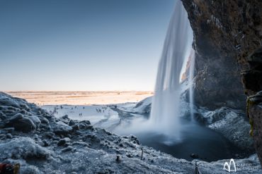 Der fünfte Tag unserer Fotoreise steht ganz im Zeichen der berühmten Wasserfälle, die Island zu einem der weltweit beliebtesten Reiseziele für Landschaftsfotografie machen: Seljalandfoss, Skógafoss und der versteckte Wasserfall von Gljufrabui. Der Seljalandfoss stürzt von einer hohen Klippe über 66 Meter in einen kleinen See und ist atemberaubend schön. Was ihn so einzigartig macht, ist die Möglichkeit, hinter den Sturzbächen des Wasserfalls zu wandern und mit etwas Glück fantastische Lichtstimmungen einzufangen. Im Winter ist die Gegend um den Seljalandsfoss ein weihnachtliches Winterwunderland, mit schneebedecktem, gefrorenem Boden und kristallinen Eiszapfen. [Hinweis: das Eis auf den Wegen kann gefährlich sein, daher empfehlen wir hierfür Steigeisen mitzubringen.]
