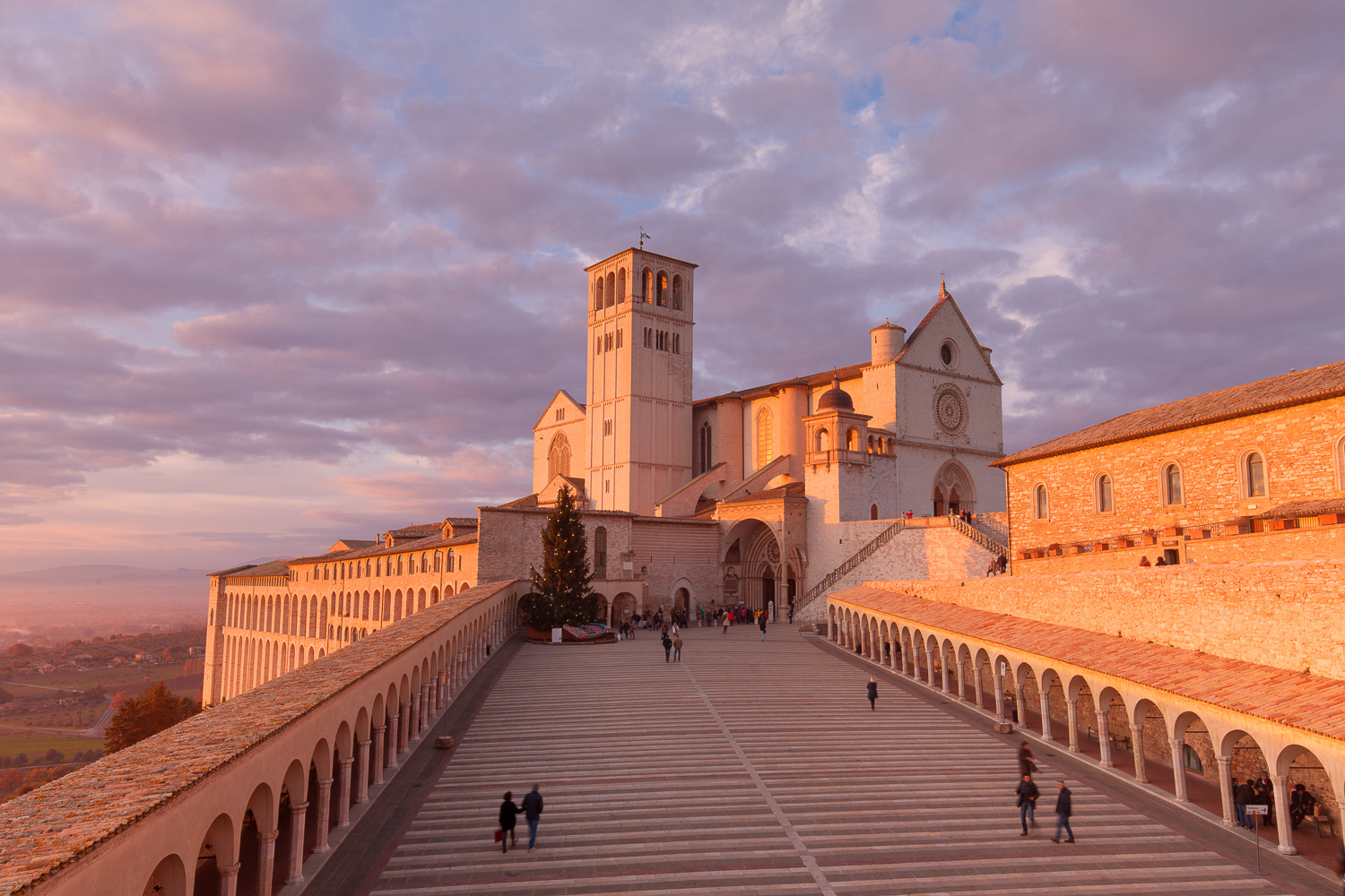 Der heutige Tag steht ganz im Zeichen der geschichtsträchtigen umbrischen Dörfer Spello, Todi und Assisi. Nach einer ca. 1-stündigen Fahrt über die Bergrücken des Parco del Fluviale Tevere erreichen wir eine der betörendsten Städte Mittelitaliens – so legen wir in Todi einen Zwischenstopp ein. Das kleine mittelalterliche Bergstädtchen liegt auf einem felsigen Bergrücken, an dessen höchstem Punkt der Turm eines gotischen Doms das hügelige Bauernland grüßt. Wir bewundern die Farben und Lichter der von sanften Hügeln, Olivenhainen und Weingärten geprägten Landschaft und halten diese in unseren Bildern fest. Anschließend fahren wir weiter durch die facettenreichen Landschaften der Toskana. Unser Ziel, das kleine Dörfchen Spello, liegt am südlichen Hang des Monte Subasio zwischen Assisi und Foligno und ist aufgrund seines beträchtlichen Kultur-, Kunst- und Naturguts Mitglied im Club der „schönsten Städte Italiens". Während unseres Fotowalks durch Spello bewundern wir die malerischen, von Blumen gesäumten Straßen und dessen historische Architektur. Wir verlieren uns in den mittelalterlichen Gassen, die von wundervollen bunten, erblühten Balkonen gesäumt sind, denen sich am Tag des Corpus Domini zahlreiche Blütenteppiche anschließen, wenn die berühmte Infiorata von Spello stattfindet. Überall in der Stadt ist das Flair vergangener Zeiten zu spüren, welches sich mit modernen Boutiquen und Galerien mischt. Am Rand der Altstadt befindet sich die gut erhaltene Stadtmauer - drei Tore aus römischer Zeit sind noch erhalten und bieten sich für spektakuläre Fotos der umbrischen Landschaft an.