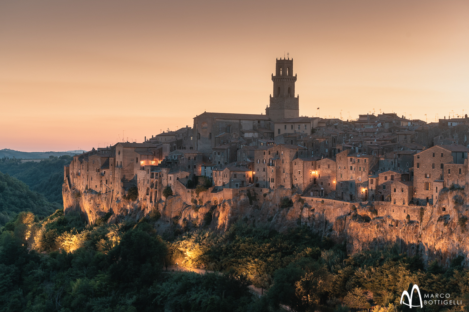 Noch ein letztes Shooting zum Sonnenaufgang, dann ist es schon an der Zeit, das Val d'Orcia zu verlassen und in Richtung Süden zu den antiken Tuffsteinstädten Pitigliano und Sorano aufzubrechen. Pitigliano präsentiert sich inmitten eines märchenhaften Panoramas - ein magischer Anblick der uns noch lange im Gedächtnis bleiben wird. In 300 Metern Höhe erhebt sich die Silhouette des Städtchens über einem steilen Tuffsteinplateau, begrenzt von üppig grünen Tälern und Flüssen. Zahllose würfelförmige Häuser schmiegen sich unterhalb einer Kathedrale dicht aneinander und wirken selbst wie aus bizarrem Fels gehauen. Die hohen Tuffsteinwände, die von Tausenden von Höhlen und Wohntürmen durchbrochen werden, prägen die mittelalterliche Stadtanlage, welche mit ihren steil abfallenden Hängen wie aus dem Boden der Maremma gewachsen zu sein scheint. Unsere Fahrt gleicht einer Zeitreise: vor uns liegt nun Sorano, eine alte Stadt, die ihre Blüte während der Etruskerzeit erlebte. Sie ist von pittoresken Häusern und Gassen in einer unvergleichlichen Atmosphäre geprägt. Auch Sorano liegt, wie das nahe Pitigliano, auf einem Tuffsteinfelsen und wird ‘Matera der Toskana’ genannt. Ein Name, der auf Höhlenwohnungen und die faszinierenden Via delle Cave, in den Fels geschlagene Hohlwege, zurückzuführen ist.