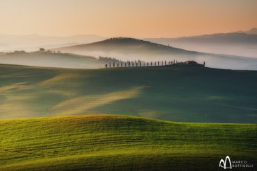 Heute wachen wir lange vor Sonnenaufgang auf, um rechtzeitig nach Podere Belvedere zu gelangen. Das gleichnamige alte fotogene Stein-Landhaus, welches man vom berühmten Aussichtspunkt sehen kann, ist von einem Tal mit seinen saftig grünen Hügeln des Chianti Rufina eingerahmt und idealerweise von einer nebligen Decke eingehüllt. Wir lassen den Zauber des ersten schummrigen Lichts, welches im Morgennebel durch die sanften Hügel scheint, auf uns wirken. Anschließend fahren wir weiter, um die malerischen „Zypressenschleifen“ von Monticciello – eine der berühmtesten Straßen Italiens - im zarten Morgenlicht, zu fotografieren. Die alte Ortschaft mit ihren mittelalterlichen Vierteln und atemberaubenden Bilderbuchlandschaften hat seine authentische Schönheit bis heute bewahrt und ist für uns eine Vorlage für herrliche Postkartenmotive. Nach einem ausgiebigen Frühstück und einer wohlverdienten Verschnaufpause brechen wir später zu einem Besuch des lebhaften Städtchens Pienza auf. Es liegt auf einem Hügel über dem Orcia-Tal zwischen Montepulciano und Montalcino und glänzt als wahres Kleinod in der südlichen Toskana. Im Herzen des von der UNESCO als Weltkulturerbe ausgezeichneten Städtchens beeindruckt die Piazza Pio II. mit ihren Renaissance-Palästen, dem Dom und herrlichen Baudenkmälern durch Harmonie und Perspektive. Wir nehmen uns Zeit und fotografieren die Facetten und wunderschönen Panoramablicke von der Stadtmauer Pienzas über die liebliche Landschaft der südlichen Toskana.