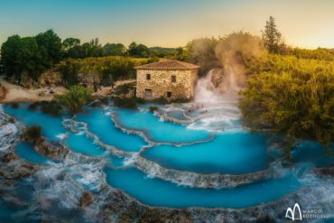 - Himmelblau schimmerndes Thermalwasser, diffuses Licht zum Sonnenaufgang und ein Heilbad in den magischen heißen Schwefelquellen von Saturnia