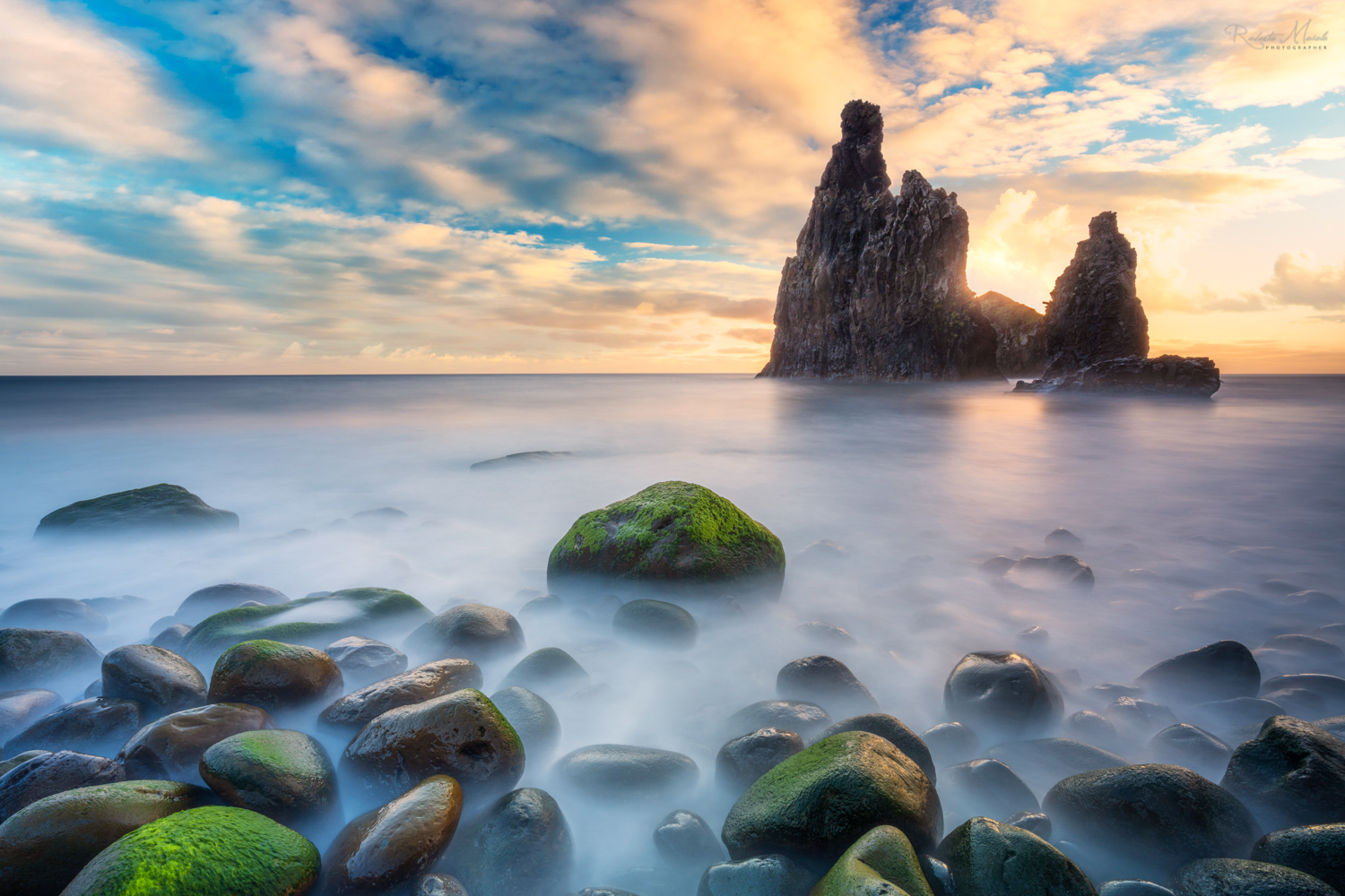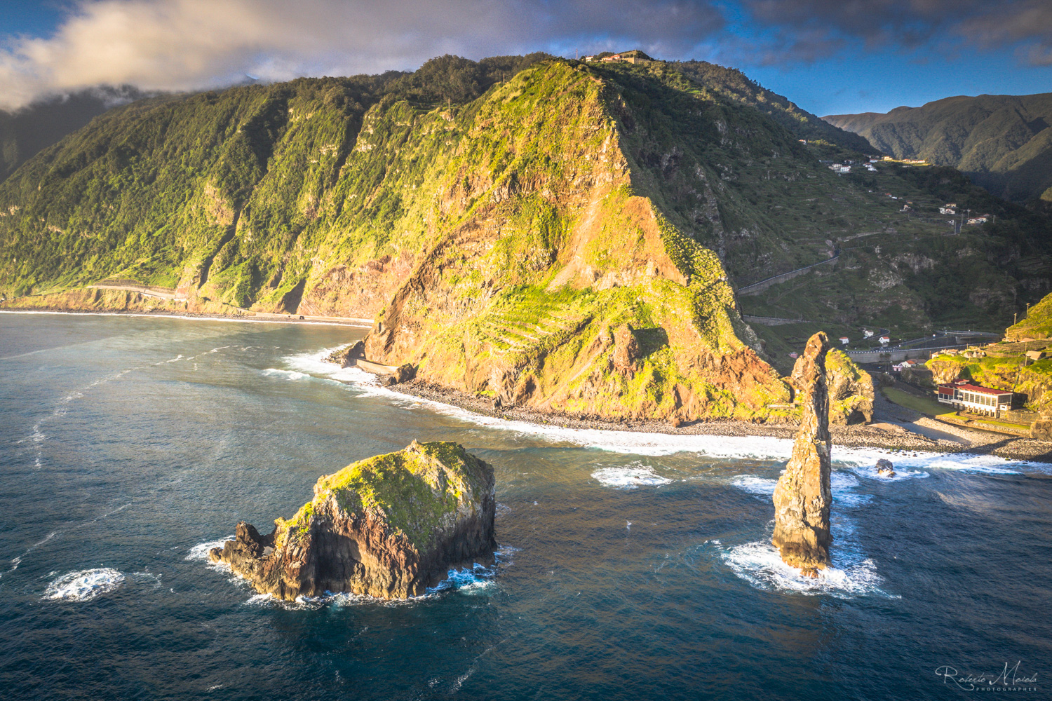 Unser erster Sonnenaufgangs-Spot liegt im Nordwesten von Madeira zwischen dem Städtchen Seixal und Porto Moniz. Schon von Weitem erkennen wir die markanten Lavafelsen Ilheus da Rib und Ilheus da Jenela, die wie Nadeln aus dem Wasser ragen. Sobald der Horizont durch die aufgehende Sonne zu glühen beginnt, fotografieren wir die bizarren Felsformationen vor der zerklüfteten Küstenlinie mit ihren heftigen Wellen, welche uns die Kraft des Ozeans förmlich spüren lassen. Auf der Suche nach der besten Bildkomposition experimentieren wir mit langen und kurzen Verschlußzeiten oder auch mit Luftaufnahmen, um diesen epischen Ort an der wilden Nordküste stimmungsvoll in Szene zu setzen. Nach unserer Rückfahrt ins Hotel bleibt ausreichend Zeit, Kräfte zu sammeln, um frisch gestärkt unsere nächste Foto-Session anzutreten.