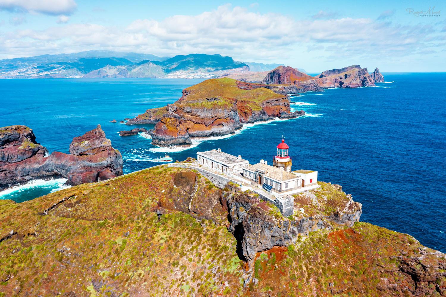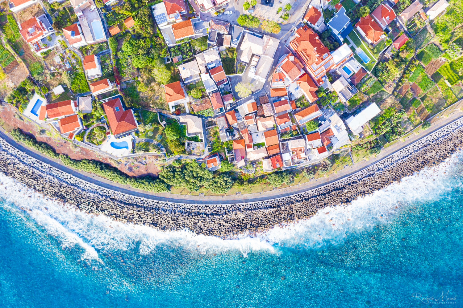 Nach einer epischen Sonnenaufgangs-Session in der nahen Umgebung und einem letzten Frühstück in unserem Hotel in Porto Moniz ist es Zeit, unsere Basis für die verbleibenden Tage an die Südküste Madeira’s zu verlagern. Auf unserem Roadtrip erkunden wir fotografisch Ponta do Pargo, die am westlichsten gelegene Gemeinde Madeiras. Schon von Weitem erblicken wir einen Leuchtturm, wie er auf den schroffen Atlantik-Klippen thront. Schwindelfrei sollten wir sein, denn links und rechts geht es 312 Meter in die Tiefe. Damit ist Ponta do Pargo das höchstgelegene Signalfeuer Portugals, welches im Sekundentakt drei weiße Lichtblitze etwa 80 Meilen hinaus auf‘s Meer schickt. Fast könnte man meinen, der Leuchtturm flirtet ein bisschen mit dem Meer, statt die Seefahrer zu warnen. Vor uns liegt eine Traumkulisse mit atemberaubenden Ausblicken auf den Ozean und zugleich tollen Möglichkeiten für Luftaufnahmen. Anschließend setzen wir unsere Reise in Richtung Jardim do Mar, einem malerischen Örtchen an der Westküste der Insel, fort. Die pittoreske Lage des kleinen Städtchens bietet spektakuläre Ausblicke auf das tiefblaue Meer, welches sich an imposanten Felsen bricht – eine majestätische Naturkulisse für uns Fotografen. So halten wir die Essenz des Ortes mit unseren Kameras fest und fokussieren uns auf die vielfältigen Details der malerischen Kleinstadt, welche von engen Gassen und charakteristischen niedrigen Häuserzeilen mit roten Ziegeldächern und weißen Wänden, umgeben von blühenden Bougainvillea und anderen tropischen Pflanzen, geprägt ist.