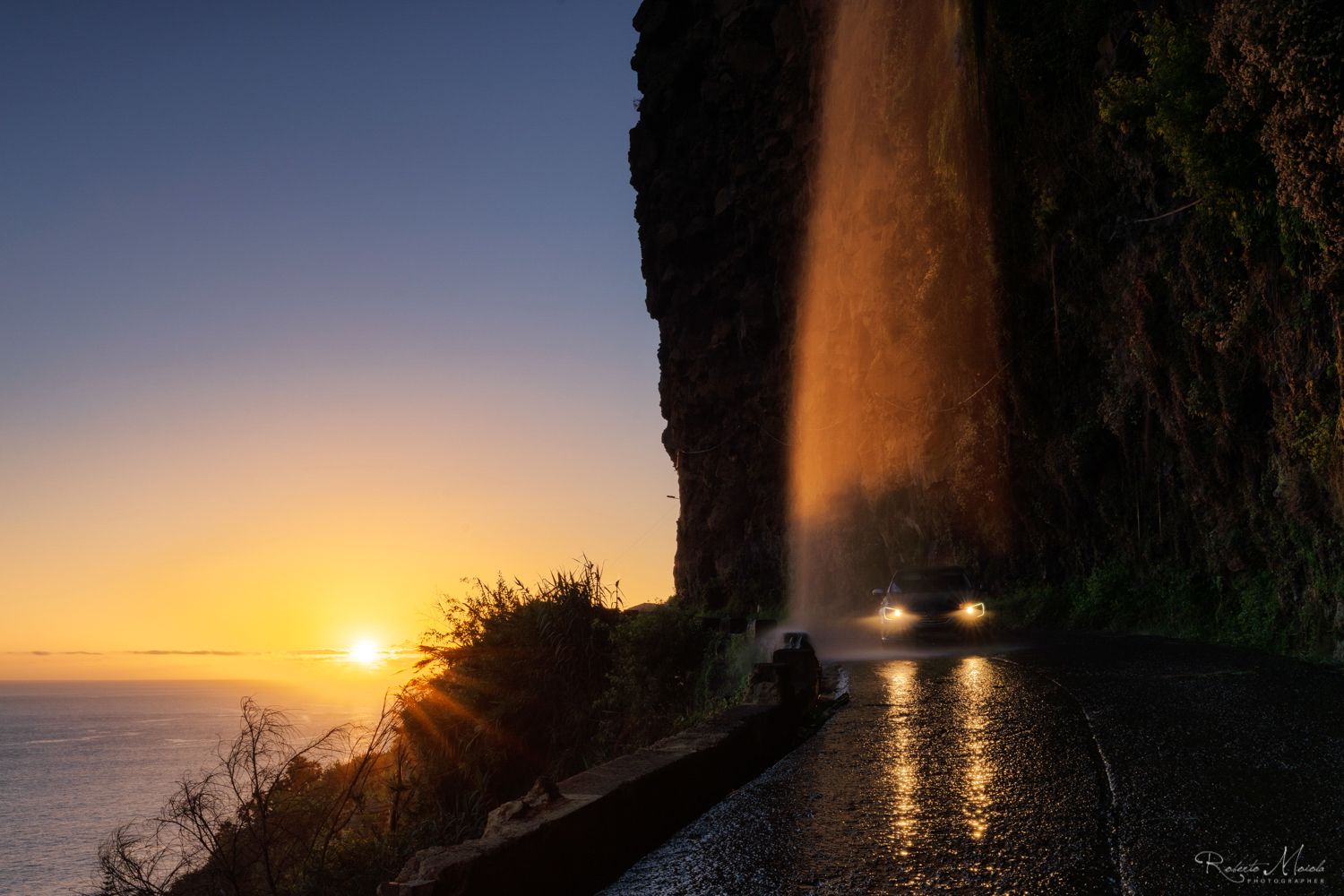 Nach einem ereignisreichen Tag checken wir in unser Hotel in Caniço ein und verarbeiten all unsere fotografischen Eindrücke währenddessen wir uns ausruhen und für den Abend stärken. Auch heute bleibt ausreichend Zeit, um Fragen zu klären und neue Erkenntnisse für Ihre Fotografie zu gewinnen. Zum Sonnenuntergang wartet einer der außergewöhnlichsten und wohl bekanntesten Wasserfälle Madeira‘s auf uns - der Cascata dos Anjos in Ponta do Sol. Der Wasserfall stürzt über eine Felswand auf die Küstenstraße und bietet ein absolut geniales Naturschauspiel und Fotomotiv. Die Einheimischen fahren hierher, um ihr Auto zu waschen, währenddessen sich Touristen mit Bikini und Badehose eine erfrischende Abkühlung gönnen. Besonders im weichen Licht des Sonnenuntergangs wirkt der Wasserfall unwirklich und romantisch schön.