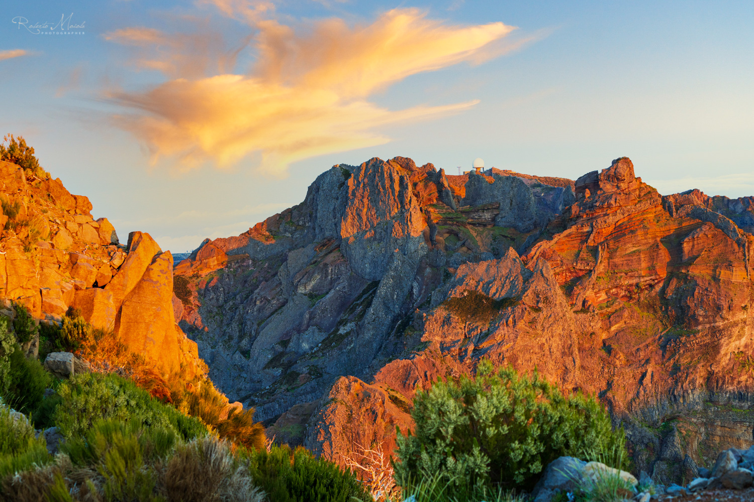 Am Abend wartet das nächste Highlight auf uns - der malerische Pico do Arieiro – mit 1.818 Metern ü. M. ist er der dritthöchste Berg der Insel. Der Aufstieg führt uns durch eine dramatische Berglandschaft, gekennzeichnet von steilen Felswänden und üppigen Bergwiesen. Unterwegs bieten sich bereits zahlreiche Fotomotive: tiefen Schluchten, durch die sich schmale Pfade winden, alpine Pflanzen, die entlang des Weges blühen und markante Felsformationen, die durch Jahrhunderte der Erosion geformt wurden, verleihen unseren Fotos eine zusätzliche Tiefe und Textur. Oben angekommen, haben wir das starke Bedürfnis, einfach dort zu verweilen, still zu stehen und tief Luft zu holen, um den magischen Moment zu genießen, in dem uns der atemberaubende Blick über ganz Madeira zu Füßen liegt. Bei freier Sicht sollten wir selbst die etwa 50 km entfernte Nachbarinsel Porto Santo sowie die Ilhas Desertas am Horizont erkennen. Sobald wir den Gipfel erreichen, startet der Countdown für das Warten auf die wunderschönen Farben des Sonnenuntergangs, welcher die Wolkendecke in rot-goldenes Licht taucht. So lassen wir uns vom Anblick dieser grandiosen Kulisse verwöhnen und fotografieren ausgiebig unser ersehntes Motiv, bevor wir zum Abendessen ins Hotel zurückkehren.
