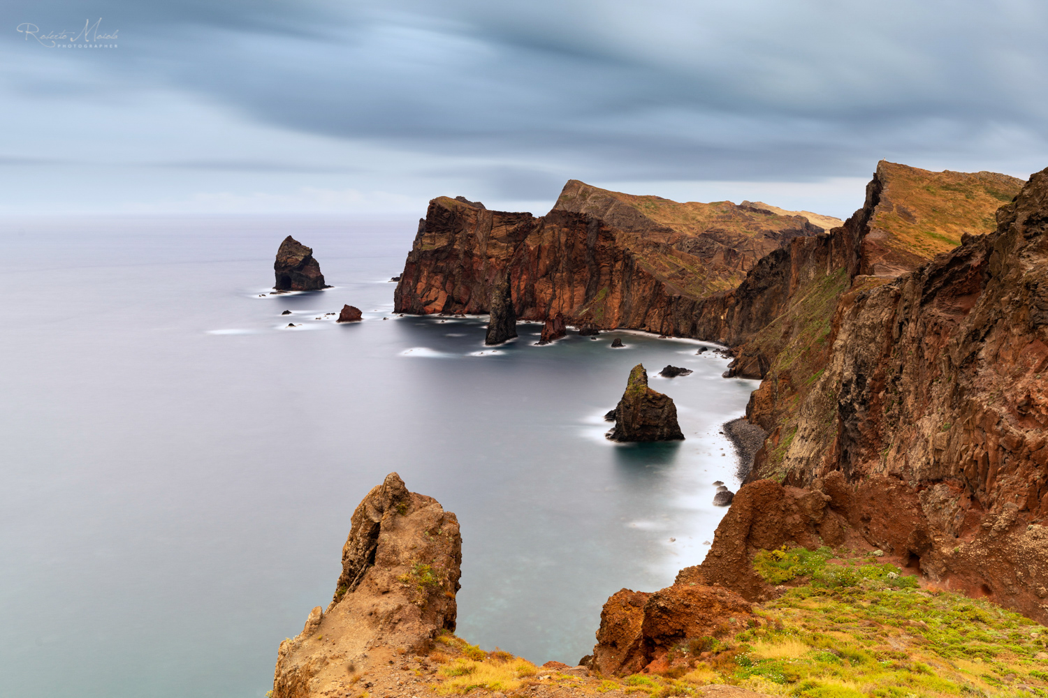Und wieder heißt es heute: „Früh Aufstehen!“, denn wir wollen den Gipfel von Ponta de São Lourenço - ein bizarres Naturreservat am östlichsten Zipfel der Insel - rechtzeitig vor Sonnenaufgang erreichen. Auf unserer ca. 1-stündigen Wanderung erwartet uns hier eine der letzten Landschaften Europas, die von menschlicher Hand fast unberührt geblieben ist. Mit Stirnlampen machen wir uns auf den Weg in Richtung Ostkap zum berühmtesten Aussichtspunkt der Insel, bevor uns die ersten Sonnenstrahlen anblinzeln. Auch das ist Madeira: Auf dem Kap Ponta de São Lourenço begegnet uns trockener fast wüstenartiger Boden vulkanischen Ursprungs aus Trachyt und rotem Tuff mit steilen Klippen, die sich durch Erosion und die Kraft der Natur über tausende von Jahren so spektakulär formten. Es gibt hier im Gegensatz zum Rest der Insel fast keine Bäume. So ist Ponta de São Lourenço auch heute noch ein Ort, an dem sich imposante Felsenklippen, das Meer und eine einmalige Vegetation in einem überwältigenden - von Mutter Natur kreierten Meisterwerk - vereinen. Die Abgeschiedenheit, wilde Buchten und atemberaubende Ausblicke auf den Atlantik und die vorgelagerten Inseln machen unsere Fotowanderung zu einem einmaligen Erlebnis. Immer wieder bieten sich weite Ausblicke auf den tosenden Atlantik und die vorgelagerten Felsinseln, an denen sich die Brandung bricht. Der 160 Meter hohe Gipfel hält zur Belohnung ein atemberaubendes Panorama für uns bereit. Auf der einen Seite fällt die Küste hunderte Meter senkrecht ins Meer, währenddessen auf der anderen Seite sanfte Hügel regelrecht zum Verweilen einladen. Hier sind wir vom Klang der Wellen, den vielfältigen Rottönen der Berge und dem schimmernden Meer umgeben, das immer heller erscheint, je weiter die Sonne nach oben steigt. Wir können uns kaum satt sehen und setzen die Silhouetten der schroffen Felsstrukturen im weichen Morgenlicht ausdrucksvoll in Szene.