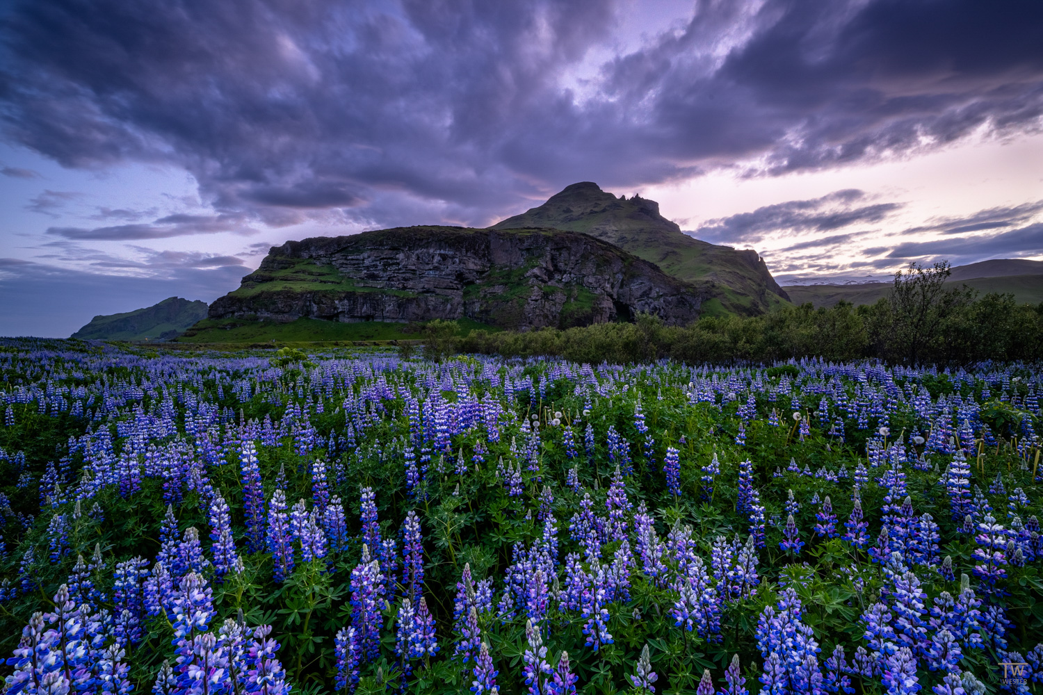 Am nächsten Morgen fahren wir weiter zu unserer nächsten Station: Vík í Mýrdal im Süden Islands. Auf dem Weg dorthin passieren wir einige interessante Stellen: grüne Moos- und Grasteppiche werden von plötzlich auftauchenden Lava- und Geröllfeldern abgelöst, kleinere Wasserfälle funkeln von Weitem in Richtung Ringstraße und wilde Islandpferde schauen neugierig den vorbeifahrenden Autos nach. Je nach Wunsch der Reisegruppe können wir jederzeit gern einen Fotostopp einlegen. Je mehr wir uns dem idyllischen Dorf Vík í Mýrdal nähern, desto dichter werden die Lupinenfelder, die im isländischen Sommer in kräftigen Violetttönen blühen, am Wegesrand. Wir werden uns selbstverständlich genügend Zeit nehmen, um mit unseren Kameras in das prachtvolle Blütenmeer einzutauchen. Nachdem wir die neue Unterkunft bezogen und uns gestärkt haben, widmen wir uns im gemütlichen Ambiente unserem theoretischen Fotowissen und neu entstandenen Fragen von Ihnen. Um für den nächtlichen Ausflug gerüstet zu sein, bleibt Ihnen am Nachmittag ausreichend Zeit, sich auszuruhen oder gemütlich auf eigene Faust das kleine Städtchen zu erkunden.