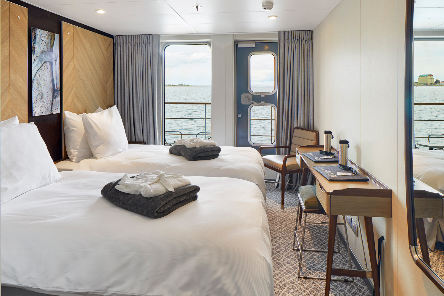 Auf dem Boutiqueschiff "Magellan Explorer" erwartet Sie eine Ausstattung, die Expedition und Wohlbefinden perfekt vereint. Die sieben stilvoll eingerichteten Kabinenkategorien – viele davon mit privatem Balkon – verbinden modernes Design mit warmem Komfort und eröffnen Ihnen traumhafte Ausblicke auf die unendliche Weite der antarktischen Landschaft.