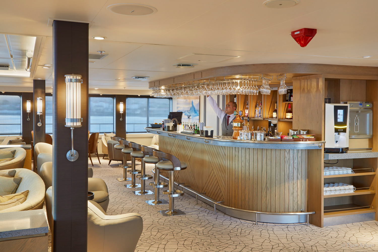 Zurück an Bord lädt die Lounge mit ihren Panoramafenstern dazu ein, den Blick über die endlose Weite schweifen zu lassen. Fachkundige Vorträge vertiefen das, was wir erlebt haben, und am Abend füllen sich die Gespräche mit Bildern des Tages: das leise Eintauchen eines Wals, das Funkeln von Eis im Abendlicht, der erste Fußabdruck im unberührten Schnee. Hier draußen, fern jeder Zivilisation, lebt man jeden Moment intensiver – ganz im Rhythmus des weißen Kontinents.