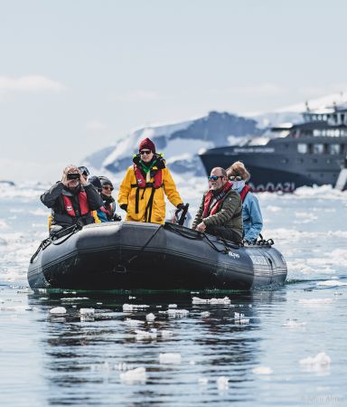 - Zodiac-Exkursionen und Landgänge: Spüren Sie die Nähe zur Wildnis beim Navigieren zwischen Gletscherfronten oder beim Betreten des antarktischen Kontinents – auf Wanderungen oder bei Schneeschuhtouren