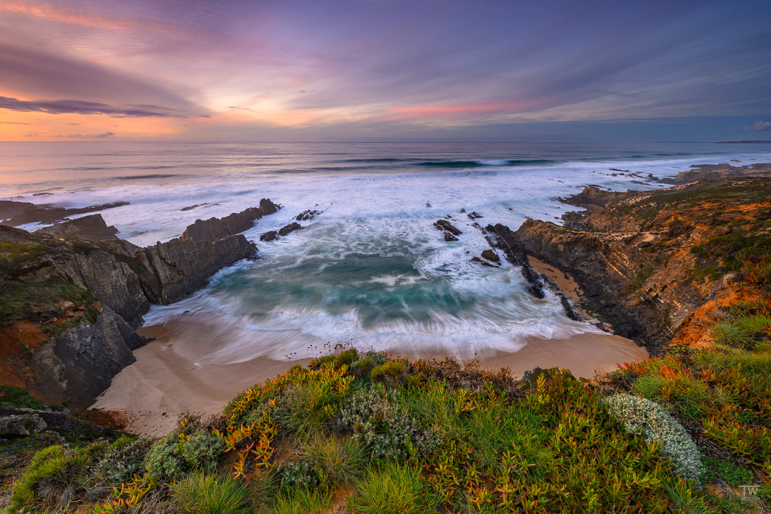 Am dritten Tag führt uns unser Weg zu einer weiteren kleinen „Meeres-Perle“ an der Algarve. Unser Ziel sind die Strände Praia da Ingrina und Praia do Zavial – zwei eher versteckte, helle Sandbuchten, eingebettet in eine ursprüngliche, sanft geschwungene Hügellandschaft. Das klare, türkisfarbene Wasser des Atlantiks erinnert fast an ferne, tropische Orte … auch wenn hier statt Palmen markante Felsformationen die Kulisse prägen, die im warmen Morgenlicht in goldenen Tönen zu leuchten beginnen. Rund um das etwas erhöht gelegene Forte de Santo Inácio do Zavial eröffnet sich uns ein spannendes, felsiges Terrain mit zahlreichen Perspektiven. Gerade in den frühen Stunden des Tages entstehen hier besonders stimmungsvolle Aufnahmen, wenn das weiche Licht der Morgensonne die Landschaft warm anleuchtet und ihr eine ganz besondere Tiefe verleiht. Nach dieser Morgensession kräftigen wir uns bei einem reichhaltigen Frühstück und machen uns bereits nach einer kurzen „Mittagspause“ auf den Weg: wir fahren die Westalgarve gen Norden entlang. Am frühen Nachmittag sind wir in der friedlichen Ortschaft Sines angekommen und werden wir für eine Nacht in einem wunderschönen Hotel & Spa einchecken. Ein besonderer Vorteil: Im Sagres Time Apartment müssen Sie dafür nicht auschecken – Ihr Zimmer steht Ihnen während des gesamten Aufenthalts durchgehend zur Verfügung. So werden wir in der bezaubernden Gegend von Aljezur und Alentejo ausreichend Zeit haben, die fotografischen Highlights zu erkunden.