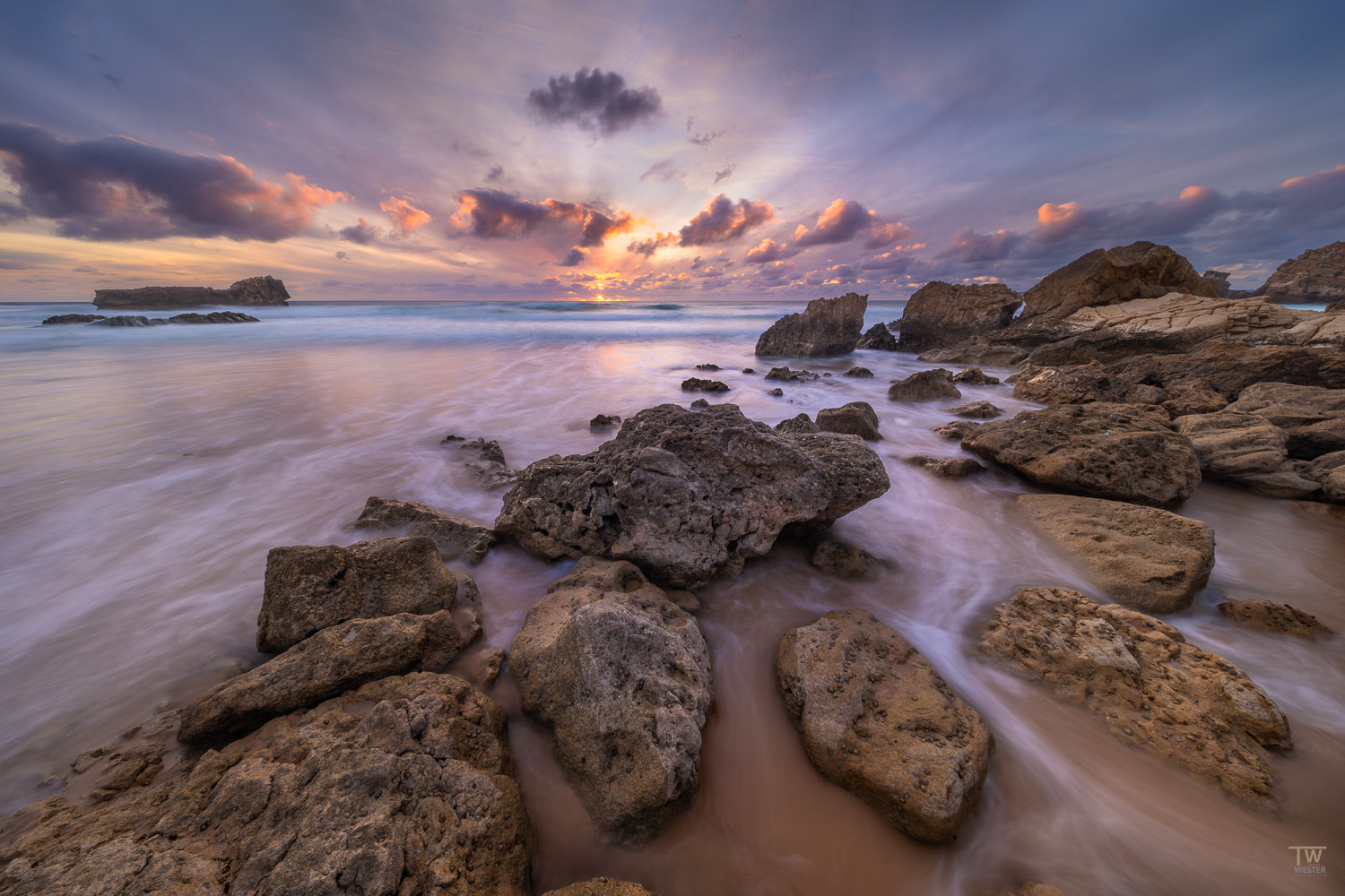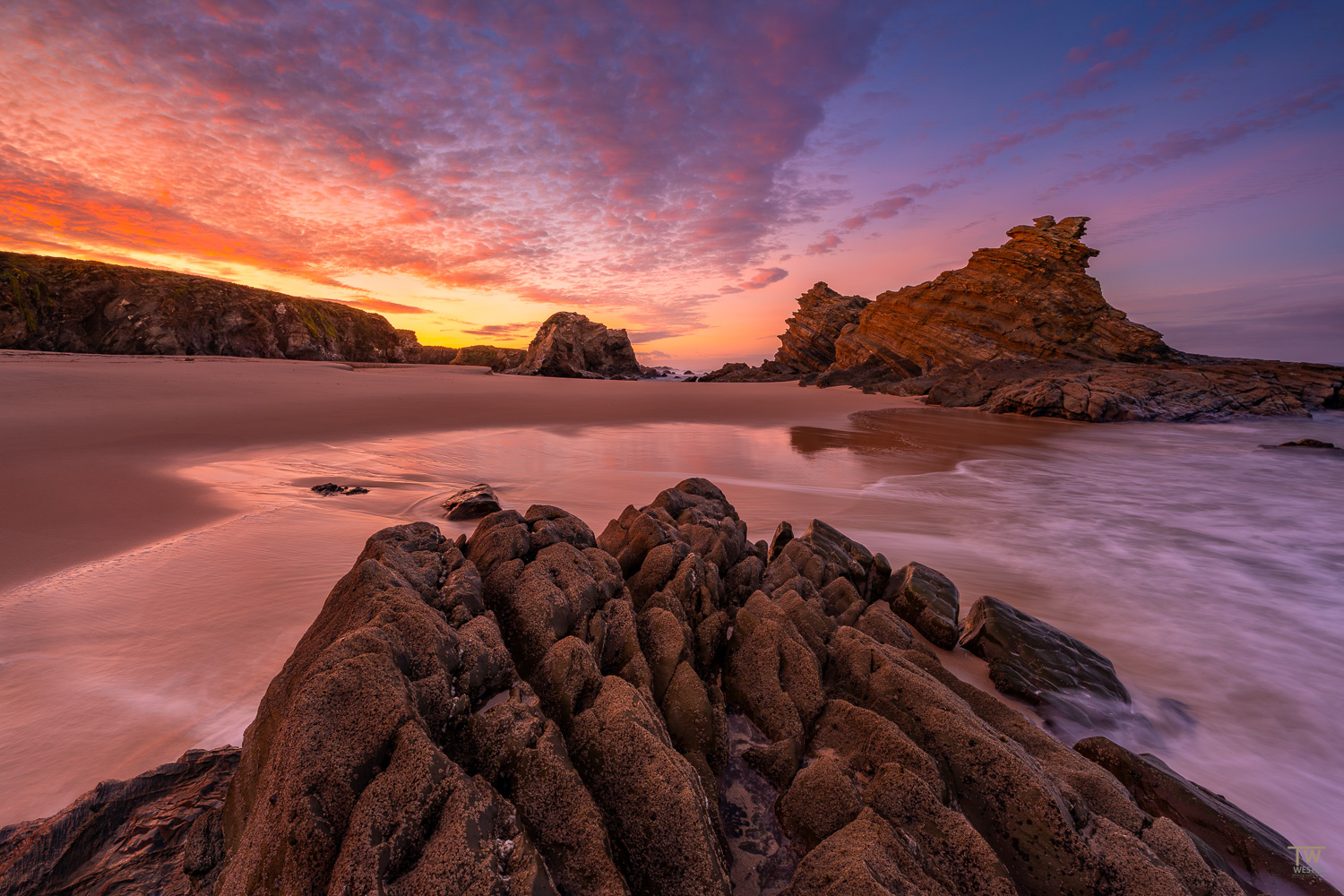 - Spiegelnde Tidenpools entlang der eindrucksvollen Küsten des Alentejo zur Goldenen und Blauen Stunde