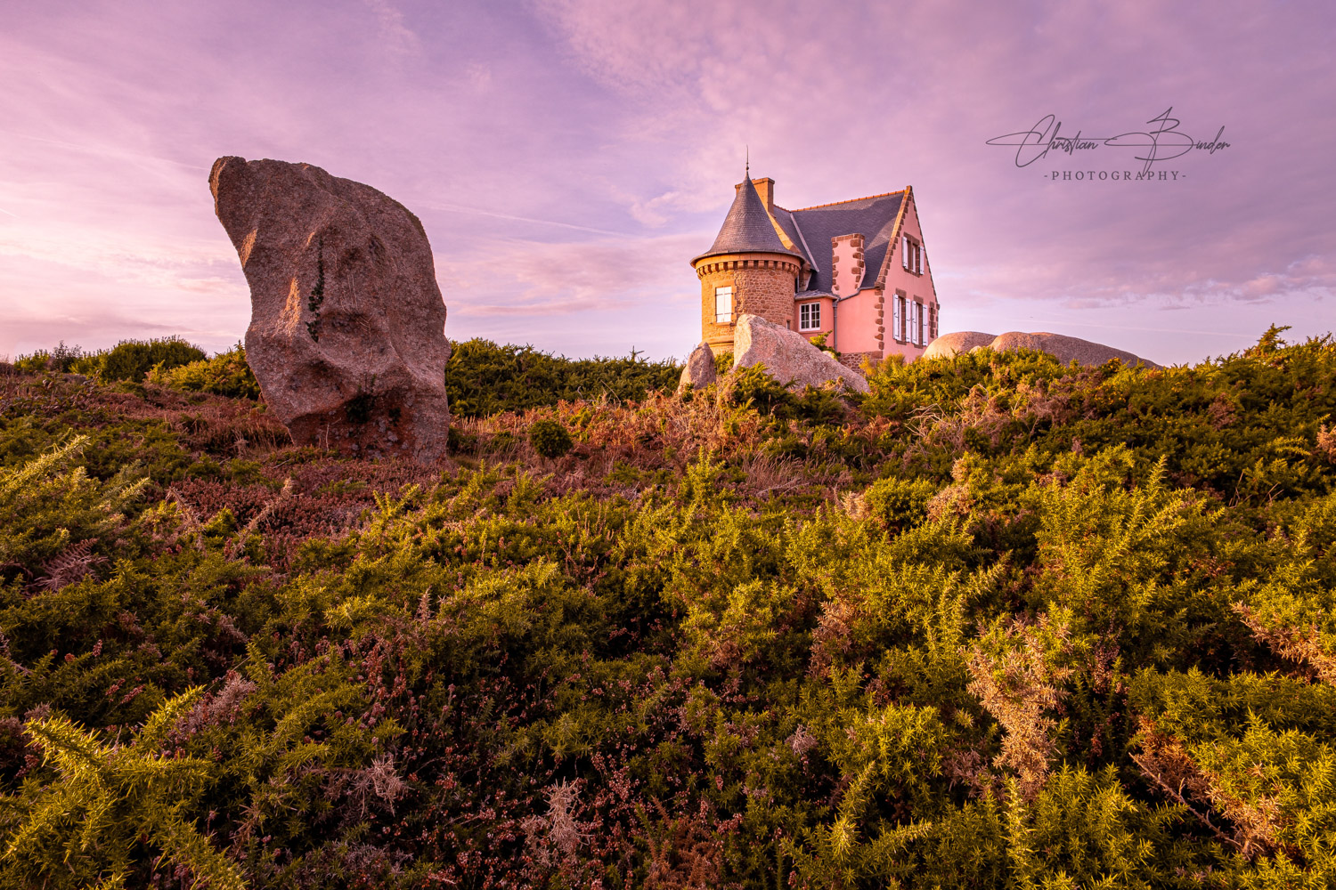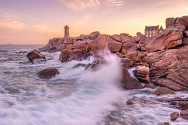 Am dritten Tag unserer Reise verlassen wir schon früh am Morgen das Hotel und machen uns auf den ca. eineinhalbstündigen Weg in Richtung Ploumanac’h, einem kleinen, verschlafenen Hafenort an der bretonischen Nordküste im Département Côtes d'Armor. Der vorgelagerte Küstenabschnitt ist für seine außergewöhnliche Schönheit weltbekannt: der Côte de Granit Rose – der rosafarbenen Granitküste. Wie der Name es bereits vermuten lässt, stapeln sich entlang der Küste so weit das Auge reicht bizarre, orange-rosafarbene Granitfelsen. Die Mineralien Hämatit und Alkalifeldspat rufen diese ungewöhnliche Färbung des 300 Millionen alten Gesteins hervor. Eine wahre Rarität, denn diese Art von Granit findet sich weltweit nur noch auf Korsika und in China. Nicht umsonst zählt das Küstengebiet damit zu den Highlights einer jeden Bretagne-Reise. Ob klein oder bis zu 20 Meter hoch, ob scharfkantig-spitz oder kugelrund: die unterschiedlichen Formationen der vom Meereswasser geschliffenen Steine kennen keine Grenzen – und bieten uns unendlich viele Möglichkeiten, diese atemberaubende Kulisse im sanften Licht kunstvoll in Szene zu setzen.