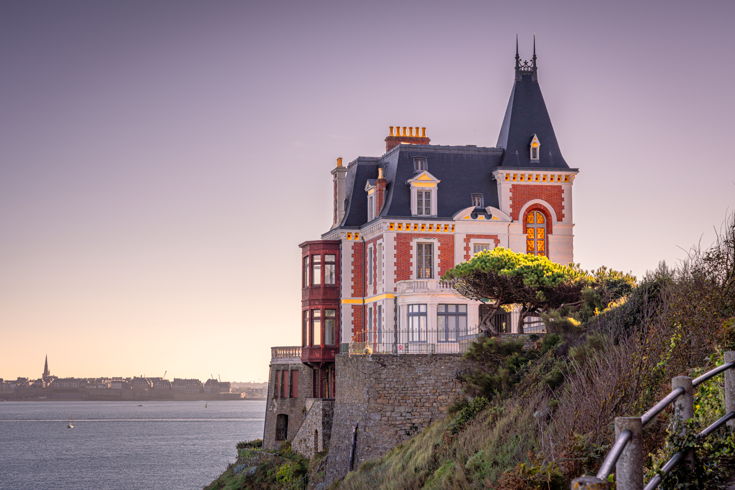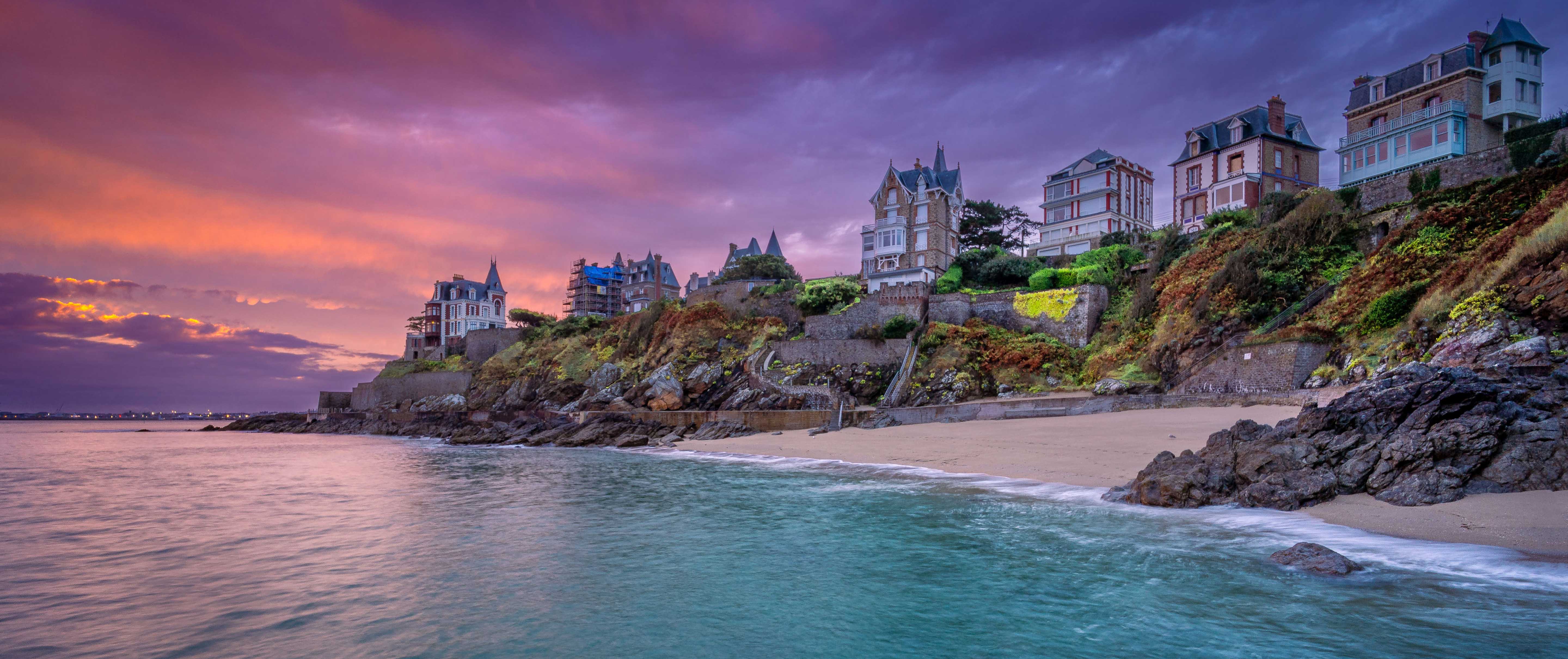 Bevor wir uns auf den Weg zu unserem Hotel nach Saint-Malo begeben, legen wir noch einen Foto-Stop in der französischen Gemeinde Dinard im Département Ille-et-Vilaine ein. Das malerische Seebad mit seinen eindrucksvollen Villen, die der Küstenregion ein mondänes und exklusives Flair verleihen, wird gern als „Nizza des Nordens" bezeichnet. Es liegt an der Mündung des Flusses Rance gegenüber von Saint-Malo an der Nordküste der Bretagne. Überall gibt es etwas Reizvolles zu entdecken: smaragdgrünes Wasser, charakteristische blau-weiß gestreifte Badezelte, stilvolle Villen und nicht zuletzt die traumhafte Bucht selbst. Nachdem wir ausgiebig durch Dinard gestreift sind, legen wir nun die letzte Etappe mit unserem Minibus zurück. Nur wenige Minuten Fahrtzeit trennen uns noch von unserer wunderschönen Unterkunft. Nach unserem Check-in im Hotel und einer kleinen Pause, tauchen wir am Abend in aller Ruhe in die entspannte Atmosphäre des Hafenstädtchens ein und schauen uns bei geeigneten Wetterbedingungen noch die beeindruckende Hafenmauer von Saint-Malo an. Nach einem köstlichen gemeinsamen Abendessen sehnen wir uns nach einer erholsamen Nacht voller Schlaf.