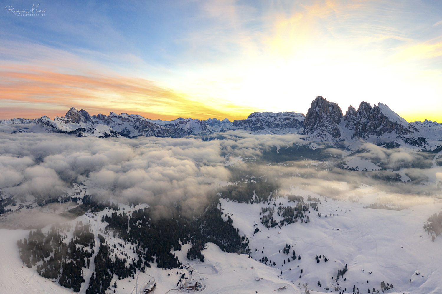 Ihre Anreise auf die Seiser Alm erfolgt individuell. Nach unserer Begrüßung gegen Mittag in unserem Hotel nehmen wir uns Zeit für eine kurze Kennenlernrunde und widmen uns den Grundzügen der Landschaftsfotografie theoretisch. Somit sind wir für unsere folgenden Fotosessions bestens gerüstet. Anschließend starten wir mit einer einem ersten Sonnenuntergangs-Shooting rund um unser Hotel oder bereits mit unserem Helikopter-Flug*. Die zauberhafte Hochebene der Seiser Alm (1.800 - 2.200 m. ü. M.) ist die größte Hochalm Europas und gilt als eine der markantesten Landschaftswunder in den Dolomiten. Wir blicken auf die legendären Dolomitengipfel Sasso Lungo, Sasso Piatto, Sciliar und Rosengarten, die durch ihre herbe natürliche Schönheit bestechen. Das Alpenglühen, von den Einheimischen auch "Enrosadira" genannt, hat in den Dolomiten seinen Ursprung und ist von jeher bezeichnend für das gesamte Gebirge.