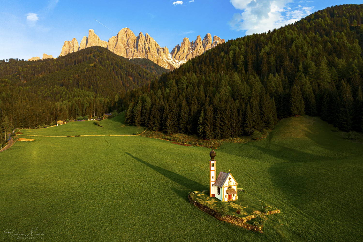 Der heutige Tag steht ganz im Zeichen des Villnösstals. Mächtig thront das Gebirgsmassiv, welches sich bis zum Grödnertal im Süden zieht. Umgeben von einer malerischen Szenerie, dessen Farbpalette von Grün bis Orange reicht, hebt sich das Dorf St. Magdalena am Fuße der Puez-Geisler Kette in eindrucksvoller Art vom Dolomitengestein – auch bleiche Berge genannt - ab, welche sich je nach Uhrzeit rosa oder kupferrot färbt. Wer dieses Naturspektakel einmal gesehen hat, wird es nicht mehr vergessen. Rechtzeitig vor Sonnenaufgang suchen wir uns eine geeignete Position, um die ersten weichen Lichtstrahlen, die auf das Geisler-Massiv treffen, stimmungsvoll einzufangen. Es ist jetzt an der Zeit, Postkartenmotive, wie den leuchtend roten Kirschbaum oder das bekannte St. Johann Kirchlein in den Ranuiwiesen mit der imposanten Geislergruppe im Hintergrund, aufzunehmen. Nicht umsonst zählen diese Szenerien zu den beliebtesten Fotomotiven Südtirols.