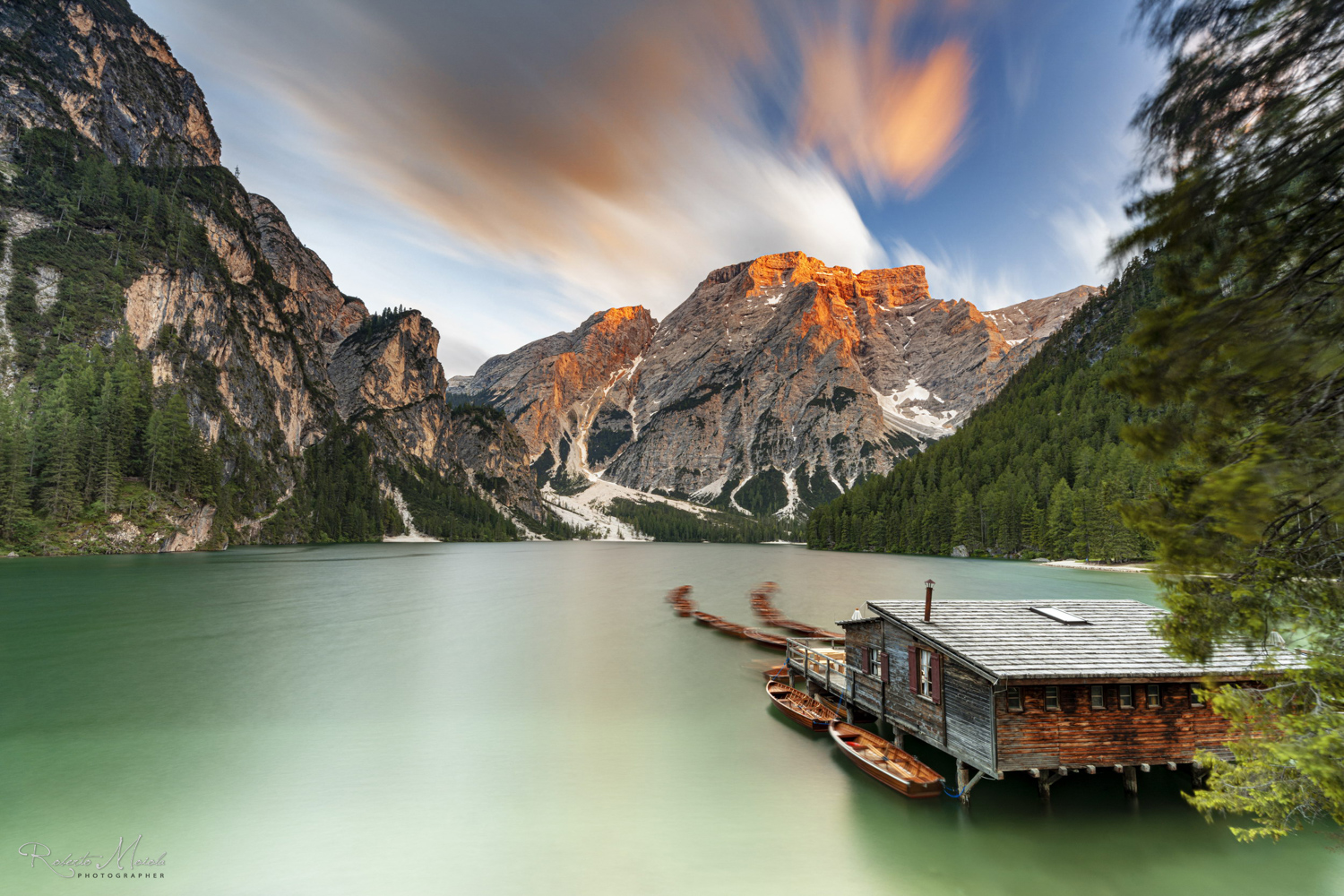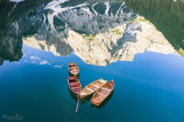An unserem letzten Tour-Tag zieht uns zum Sonnenaufgang ein magischer Ort in seinen Bann – der Pragser Wildsee (Lago di Braies), der bekanntermaßen zu einem der schönsten Seen Europas gekürt wurde. Eingebettet in schroffe Felsen mit ihren tannenbewachsenen Hängen besticht der größte und mit maximal 36 Metern tiefste See der Dolomiten durch seine türkisgrüne Farbe und das imposante Seekofel-Massiv (2.810 m), welches allgegenwärtig über der Szenerie thront. Nach einer kurzen Fahrt erreichen wir unser Ziel (auf 1.494 m). Glasklar spiegelt sich die imposante Kulisse der Dolomiten und ihrer Gipfel auf der glatten Oberfläche des Lago di Braies - Boote liegen wie auf einer Perlenkette aufgereiht auf dem Wildsee. Mal umringt Nebel gespenstisch die Gletscher, mal lugt die Sonne um die Ecke und blinzelt zwischen den Höhenzügen hindurch. Wir lassen uns vom friedlichen Anblick des Lago di Braies verwöhnen und fotografieren ausgiebig unser Traum-Motiv, welches bereits in der Erfolgsserie „Un passo dal cielo“ mit Terence Hill als Kulisse diente.