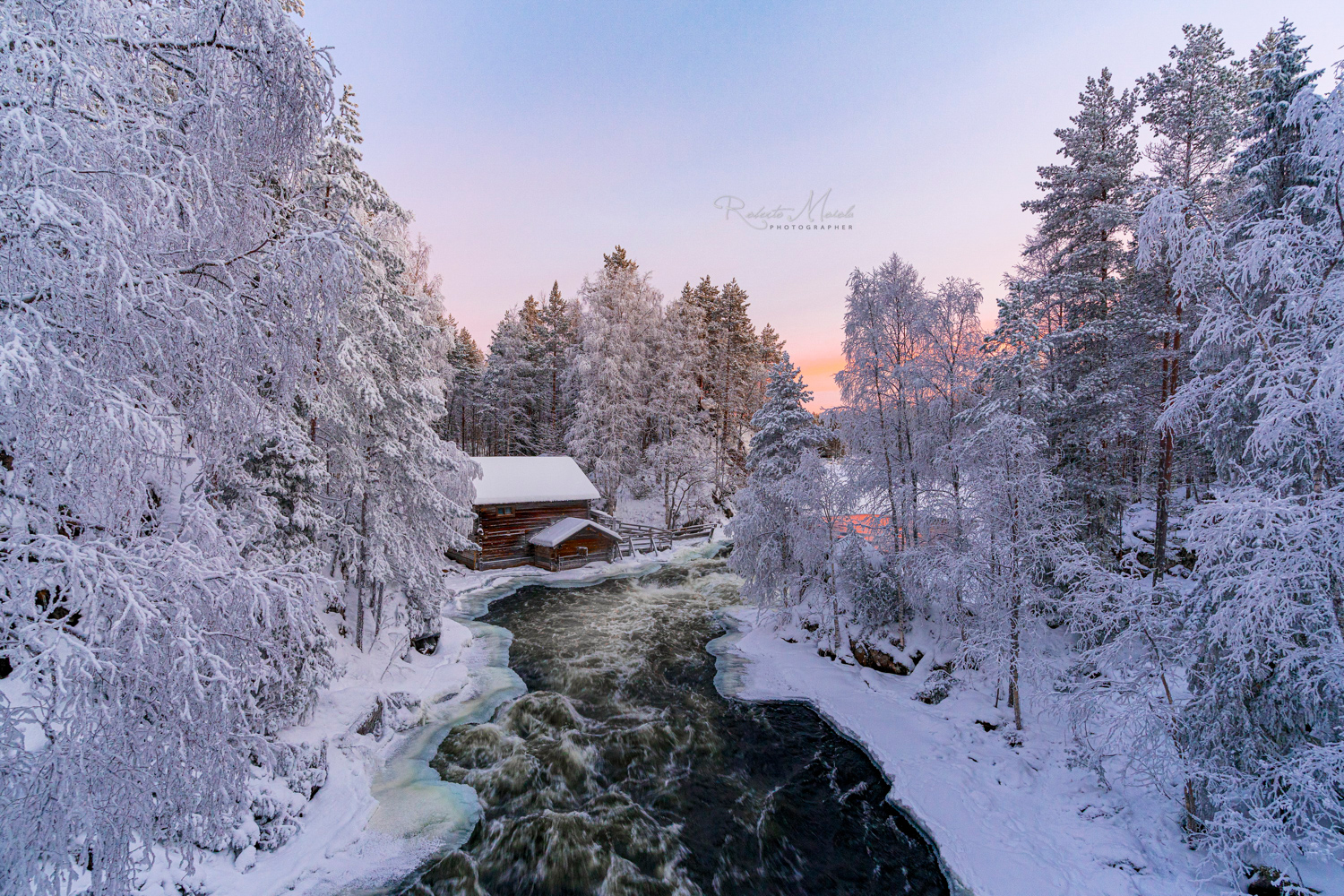 Unser Wecker klingelt heute schon sehr früh – warm eingepackt treten wir in die Dunkelheit hinaus. Doch schon beim ersten Atemzug der kalten, finnischen Winterluft erwachen unsere Sinne. Der Gedanke an die bevorstehenden Fotomotive im arktischen Winterkleid vertreibt unsere Müdigkeit. Unsere fotografische Entdeckungsreise beginnt in der märchenhaften Winterwelt des Oulanka Nationalparks in der „Taiga von Kuusamo“, welche durch eine atemberaubende Flusslandschaft geprägt ist, die abwechslungsreicher und zugleich spannender kaum sein könnte. Wir wandern durch wild-romantische Schneelandschaften mit ihren lichten Nadelwäldern, verschneiten zugefrorenen Flüssen und Seen bis wir unseren perfekten Spot – die historische Mühle am Ufer des Kitkajoki Flusses - erreicht haben. Am Ziel angekommen, zieht uns die natürliche Akustik des Flusslaufes mit seiner Hängebrücke darüber in seinen Bann. Umgeben von einer friedvollen Kulisse stürzen die tobenden Stromschnellen ins Tal, welche die Kräfte der Natur von ihrer wohl schönsten Seite präsentieren. Mit etwas Glück sehen wir eine Wasseramsel, wie sie auf der Suche nach Nahrung ins offene Wasser eintaucht.