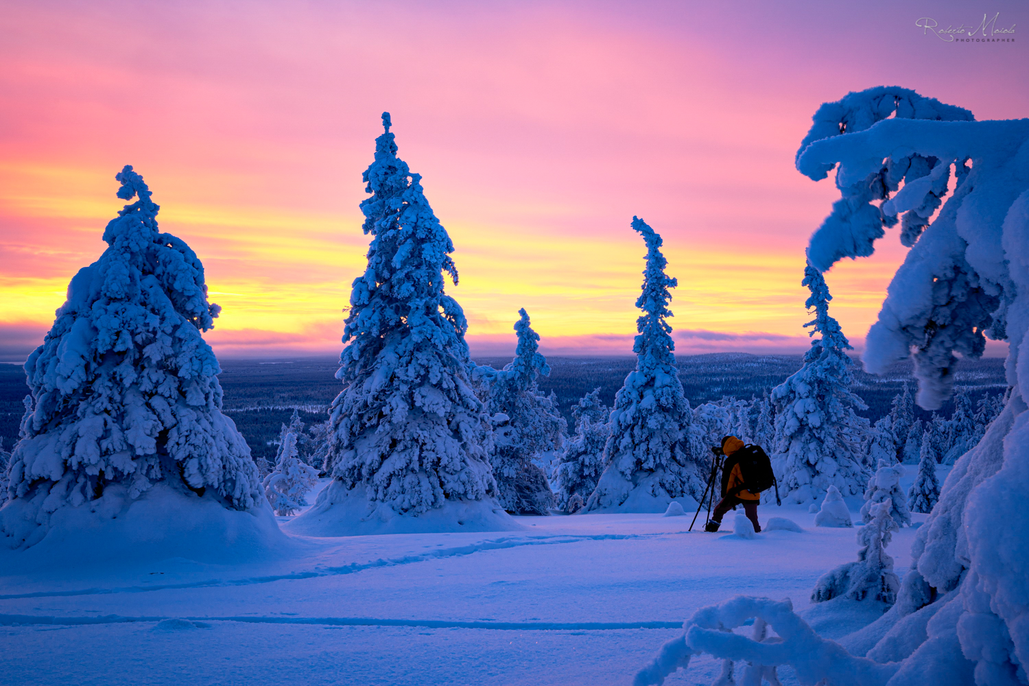 (*) Unser erfahrener Coach & renommierter Fotograf – Roberto Sysa Moiola - verfügt über umfassende Kenntnisse dieser Gegenden und Lappland im Allgemeinen, da er seit mehr als 10 Jahren an viele Orte in Nordfinnland reist, um die besten und am wenigsten frequentierten Plätze zu finden. So kann er der Gruppe die wertvolle Möglichkeit bieten, an vielen Orten vollkommen ungestört zu sein – abgesehen von den touristisch höher frequentierten Zielen wie z. B. Oulanka oder Riisitunturi.