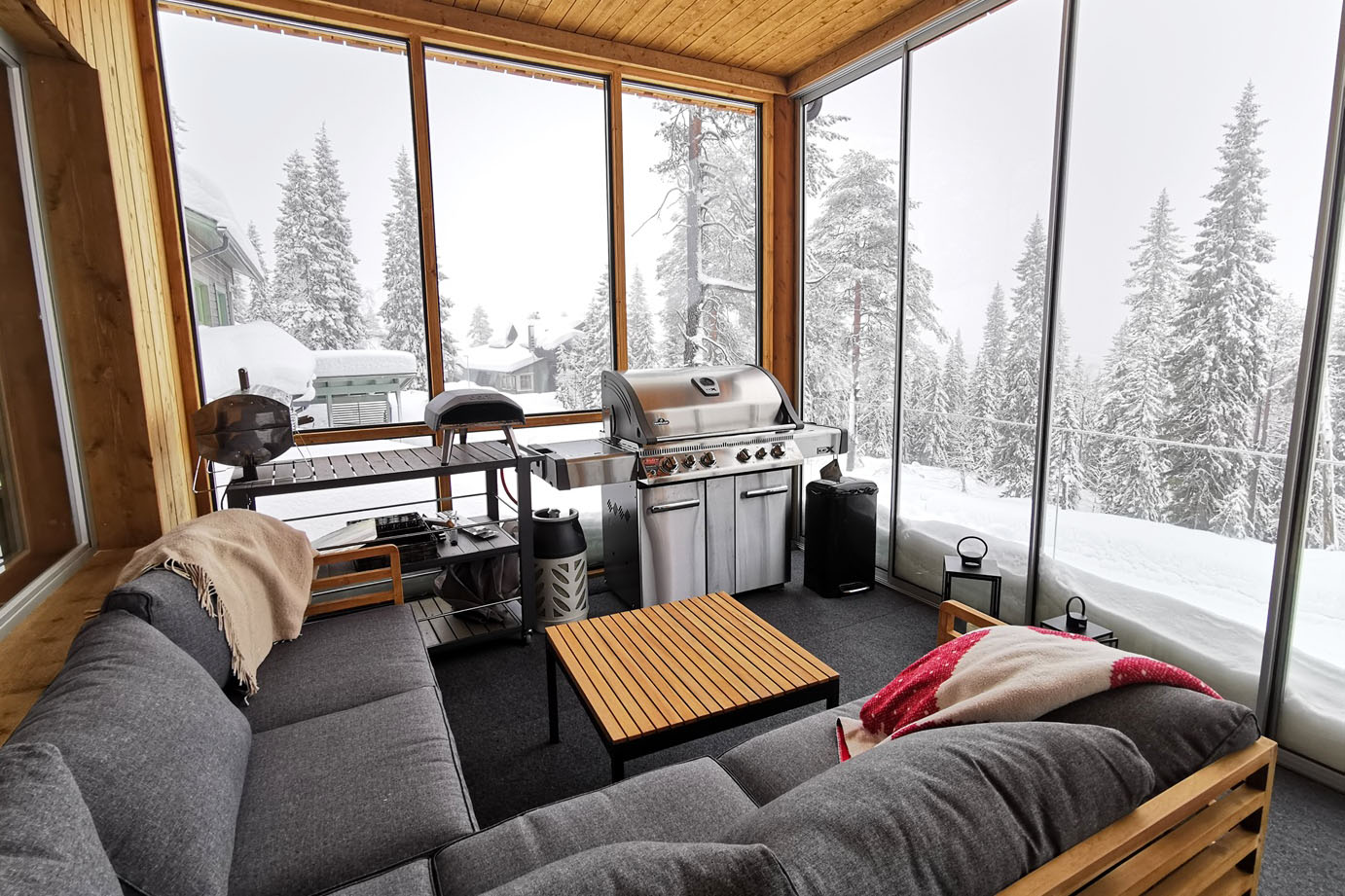Am Ende unserer Schneeschuhwanderung kehren wir mit vollen Speicherkarten in unser Cottage zurück, um uns intensiv zu erholen. Und natürlich sind wir nicht ausschließlich zum Fotografieren in die Arktis gereist. Während unseres fotografischen Abenteuers in Lappland darf auch das Wohlfühlen nicht zu kurz kommen. Deshalb machen wir, was ein Mensch in Finnland machen muss: wir gehen in die Sauna. Nach einem heißen Aufguss springen wir mutig in den kalten Schnee, der all unsere Lebensgeister weckt. Danach haben wir ein leckeres Essen verdient.