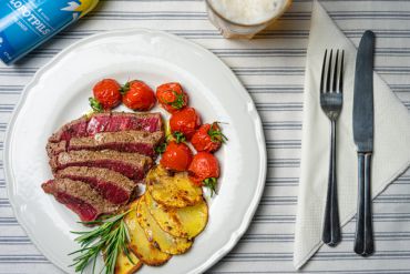 „Tagliata" Rentierfleisch mit Tomaten & Kartoffelchips