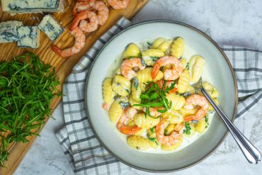 Kartoffelgnocchi mit Garnelen, Gorgonzolakäse & Rucola