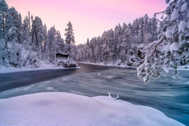 - Zahlreiche herrliche Foto-Spots inmitten tief verschneiter Wälder & Hütten, gefrorener Seen und beeindruckender Stromschnellen im Oulanka Nationalpark