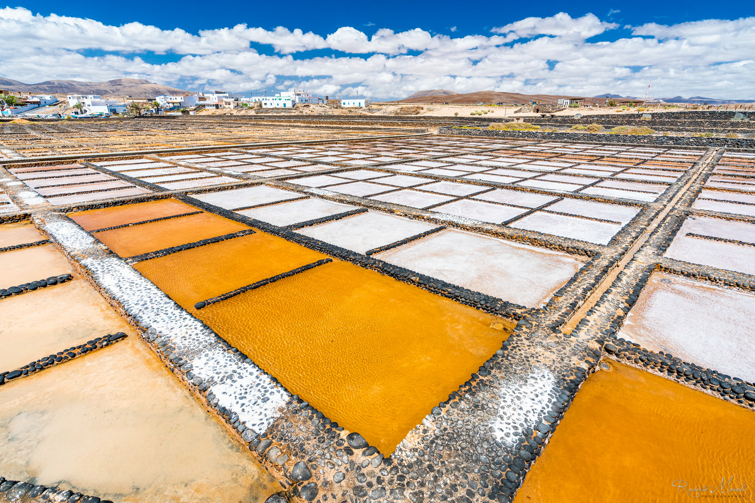 Und weiter geht's, zu den Salinas del Carmen, deren faszinierende Salzpfannen ein beeindruckendes Fotomotiv bieten. Wir halten die kunstvollen Muster fest, die durch das Verdunsten des Salzes entstehen, insbesondere wenn die tiefe Nachmittagssonne sanfte Wärme aussendet und warme Farbnuancen über die Salzfelder streut. Anschließend setzen wir unsere Reise in Richtung Nordosten der Insel fort und halten bei einem nächsten fotografischen Highlight, dem Parque Natural de las Dunas Corralejo. Uns erwartet eine auf 25 Quadratkilometern von Meer und Vulkanlandschaft begrenzte, weite Dünenlandschaft, die bis an den Atlantik heranreicht. Hier bieten sich wunderbare Möglichkeiten zur Wüstenfotografie. Wir lassen uns vom sanften Licht des Sonnenuntergangs zu reduzierten abstrakten Detailstudien mit Licht und Schatten inspirieren - einzigartige Momente, die wir bewusst auf unseren Speicherkarten einfrieren wollen. Nach einem langen Fotoreise-Tag setzen wir unsere Reise zur wunderschönen Villa nach Lajares fort – unser Zuhause für die nächsten Tage und gleichzeitig idealer Ausgangspunkt, um die Schönheit der Region zu erkunden. Bei einem leckeren Abendessen entspannen wir ausgiebig und tauschen unsere Erfahrungen und Fototipps aus bis wir müde aber zufrieden ins Bett fallen.