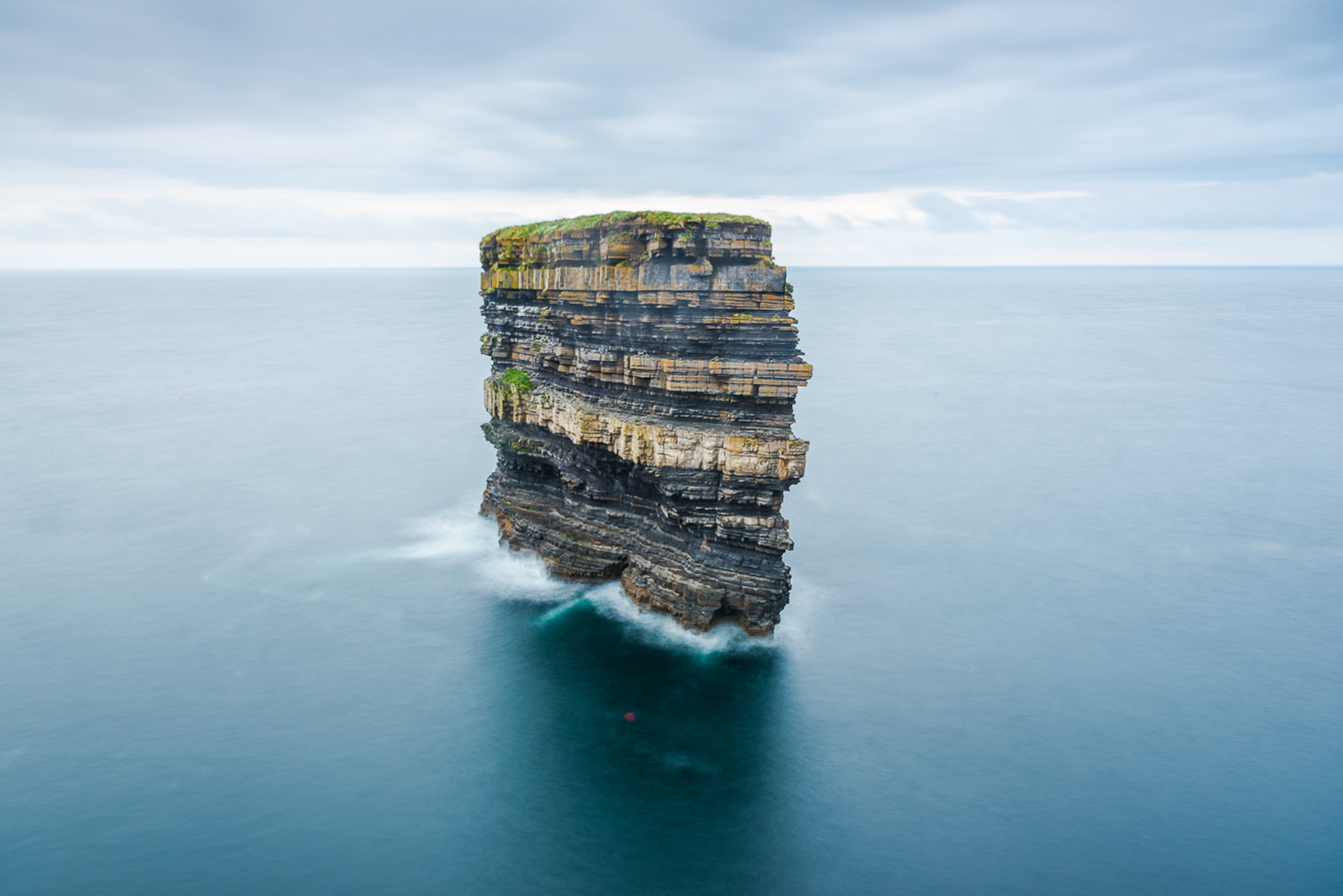 Heute nehmen wir Kurs auf den legendären Wild Atlantic Way, die spektakuläre Küstenstraße, welche sich auf einer Länge von 2.500 Kilometern im äußersten Westen Irlands am Meer entlangwindet. Wild, ungezähmt und windumtost! Meterhoch spritzt die weiße Gischt auf, wenn die Wellen mit brachialer Gewalt gegen die Felsklippen donnern. 4.000 Kilometer Wasserfläche liegen zwischen dem amerikanischen Kontinent und der irischen Küste, keine Landmasse und keine Wellenbrecher vermindern die Wucht des tosenden Ozeans. Der Wild Atlantic Way ist das irische Pendant zum California’s Pacific Coast Highway und zur Australia’s Great Ocean Road. Unser Tagesziel, der Dún Briste, ist mit seinen knapp 50 Metern Höhe schon weit sichtbar und einer der markantesten Punkte des Wild Atlantic Way. Majestätisch erhebt sich am Downpatrick Head ein gigantischer Brocken aus kühlem Fels aus dem Atlantik empor und trotzt allen Winden und Gezeiten. Der Brandungspfeiler Dún Briste, umspült von brodelnden und schäumenden Wellen, thront seit vielen Jahrhunderten an der Spitze des eindrucksvollen Küstengebiets. Eine unvergleichliche Schönheit umgibt diesen Ort, dem eine weitreichende historische Bedeutung zuteil wird. Wir suchen uns die beste Lichtstimmung und fotografieren mit langen und kurzen Verschlußzeiten, um die einzigartige Szenerie gekonnt ins Bild zu setzen.