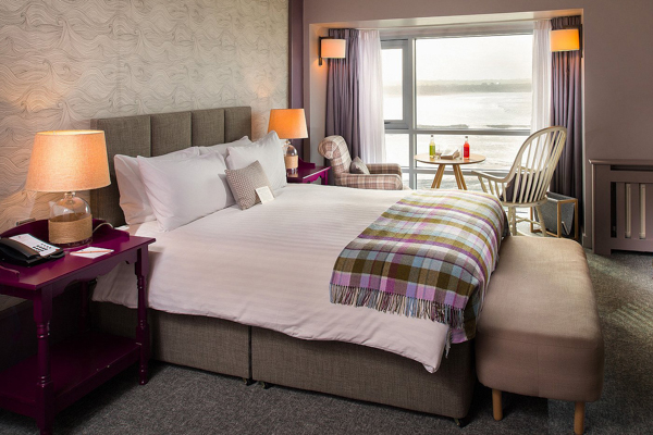 Das stilvolle 4‑Sterne‑Boutiquehotel liegt zentral in der lebendigen Kleinstadt Belmullet auf der abgelegenen Mullet-Halbinsel in County Mayo – eingebettet zwischen Broadhaven Bay und Blacksod Bay. Die 21 individuell gestalteten Zimmer und Suiten des Hotels verteilen sich über zwei Etagen und bestechen durch lebendige, moderne Einrichtung mit orientalisch inspirierten Akzenten – reich an dunklen Farben, edlem Holz und liebevollen Details. Für unsere Gäste haben wir Deluxe Doppelzimmer zur Doppel- oder Einzelnutzung reserviert. Ein individuell regulierbares Klimasystem, ein Laptop-geeigneter Safe, ein Flachbild-TV und kostenloses Highspeed-WLAN sorgen für modernen Komfort. Kulinarisch verwöhnt das Hotel seine Gäste mit zwei ausgezeichneten Gastronomiebereichen: In Talbot’s Seafood Bar genießen Sie frische Meeresfrüchte aus der Region. Das Barony Restaurant bietet ein gehobenes à-la-carte-Erlebnis mit zwei AA-Rosetten, saisonalen Gerichten und der besonderen Möglichkeit, selbst gefangenen Fisch individuell zubereiten zu lassen.
