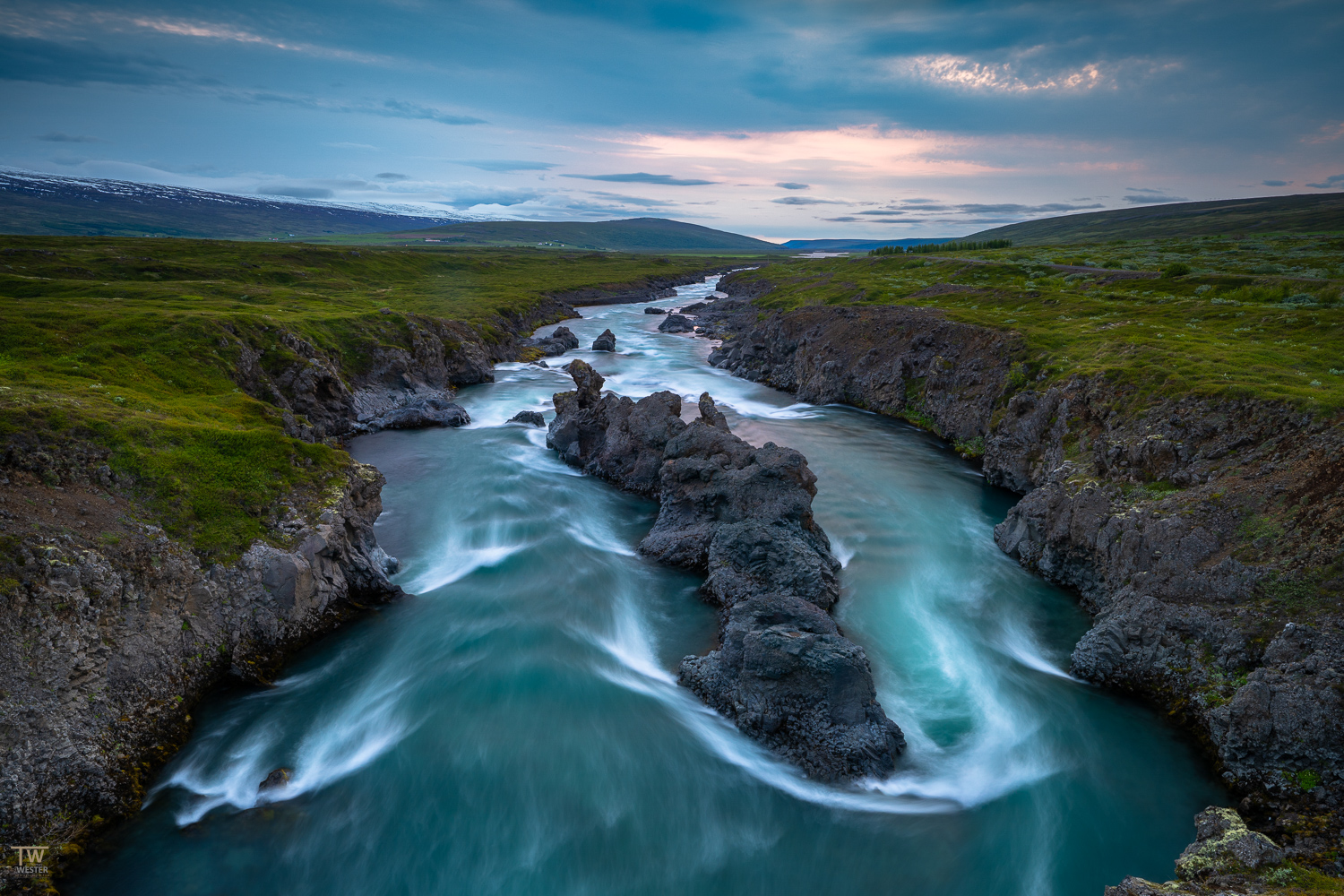 Der Goðafoss wird durch den viertlängsten Fluss Islands – dem Skjálfandafljót – gespeist, der an Europas größtem Gletscher Vatnajökull entspringt und durch ein 7000 Jahre altes Lavafeld fließt. Wir fangen jedoch nicht nur den bekannten Goðafoss aus den unterschiedlichsten Blickwinkeln mit unseren Kameras ein, sondern widmen uns auch dem kleineren Wasserfall Geitafoss fotografisch. Nur etwa 350 Meter von seinem „großen Bruder” entfernt, sausen die Wassermengen durch eine bizarre Welt aus Basaltfelsen und münden in beeindruckender Geschwindigkeit in dem rauschenden Wasserfall. An jeder Ecke gibt es etwas fotografisch zu entdecken – und genau das tun wir auch gemeinsam. Nach diesen „berauschenden” Erlebnissen der Nacht ist es nun an der Zeit, zu unserer Unterkunft zurückzukehren und den wohlverdienten Schlaf anzutreten, denn am nächsten Tag warten wieder neue spektakuläre Abenteuer auf uns.