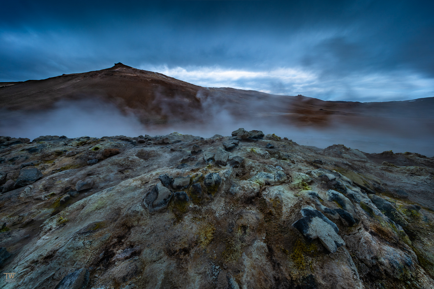 Diese führt uns zum viertgrößten See Islands mit vulkanischem Ursprung: dem Mývatn See. Mit seinen fantastischen Lavaformationen und seiner reichen Tierwelt ist die Region rund um den See genau das Richtige für uns und unsere Fotografie. Der See ist nur drei bis fünf Meter tief und mit etwas Glück können wir die seltenen Kragenenten fotografisch einfangen, da der See das größte Brutgebiet für Enten in Island ist. Aber nicht nur das: die atemberaubende Landschaft mit den Farben des kristallklaren Wassers, den Bergen im Hintergrund und den kleinen Inselchen im See bietet uns unzählige Fotoperspektiven. Nachdem wir die Gegend rund um den See ausgiebig mit unseren Kameras erkundet haben, machen wir uns auf den Weg in den nahegelegenen „Hexenkessel” – dem Geothermalgebiet Hverarönd, auch bekannt als Hverir, am kahlen Bergrücken Námafjall, der sich östlich des Mývatn Sees erstreckt. Es warten brodelnde Schlammlöcher, dampfende Fumarolen, heiße Quellen und ein intensiver Schwefelgeruch auf uns. Kein Wunder, denn nur wenige Kilometer unter der Erde befindet sich eine große Magmakammer. Der Schwefel und andere Mineralien verwandeln die Landschaft in eine gelb, rot und weiß gefärbte Mondlandschaft. Der unvergleichliche Charakter Islands liegt an diesem Ort spürbar in der Luft – und wir lassen unsere Speicherkarten glühen. Mit diesen beeindruckenden Erlebnissen im Gepäck gönnen wir uns nach der nächtlichen Rückkehr in unserem Hotel einen tiefen, erholsamen Schlaf.