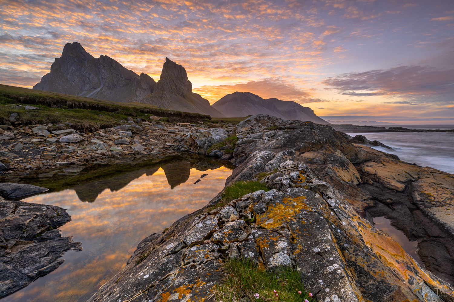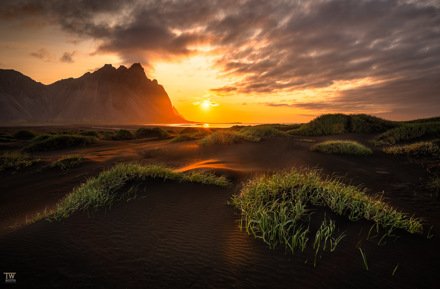 Das Programm am Abend umfasst einen Ausflug nach Höfn, wo wir uns zunächst der kulinarischen Besonderheit der kleinen Hafenstadt widmen: der vorzüglichen Küche, die insbesondere für ihre ausgefallenen Fisch- und Hummergerichte bekannt ist. Gut gestärkt machen wir uns nach dem Essen auf den Weg zum Vestrahorn. Die fotogene Felsspitze, die Teil des Berges Klifatindur ist und imposant aus dem Bergmassiv herausragt, liegt auf der Landzunge Stokksnes. Die Umgebung vom Vestrahorn ist geprägt von einer einzigartigen Landschaft, die aus schwarzen Sanddünen, Grasflächen und flachen Lagunen besteht. Diese Kontraste schaffen eine faszinierende Atmosphäre und machen den Ort zu einem spektakulären Ziel für unsere Fotografie: wir werden sowohl bei Sonnenauf- als auch bei Sonnenuntergang einen wunderbaren Blick auf das Bergpanorama genießen und atemberaubende Landschaftsaufnahmen umsetzen. Nach unserem Ausflug nach Höfn fahren wir zurück zu unserer Unterkunft und fallen müde, aber glücklich ins Bett.