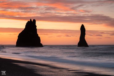 Unsere anschließende nächtliche Tour führt uns zunächst zum Black Sand Beach und danach zur bekannten Kirche Reyniskirkja, von wo Sie nicht nur einen herrlichen Blick über die kleine Stadt genießen, sondern auch die violett blühenden Lupinen fotogen in den Vordergrund Ihrer Bildkomposition setzen können. Um den Tag bzw. die Nacht abzurunden begleiten wir den Sonnenuntergang fotografisch am schwarzen Strand Reynisfjara mit den berühmten Felsnadeln – drei hoch aufragende Basaltfelsen – im Atlantik. Der Kontrast zwischen dem dunklen Sand, der aus winzigen vulkanischen Partikeln besteht, den majestätischen Klippen und dem tosenden atlantischen Ozean verleiht dem Strand eine beeindruckende Atmosphäre. Nach all diesen Erlebnissen kehren wir in dieser Nacht deutlich früher zu unserem Hotel zurück, um wieder mal etwas mehr Energie tanken zu können.